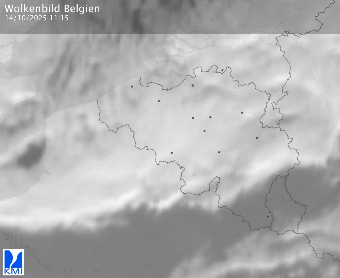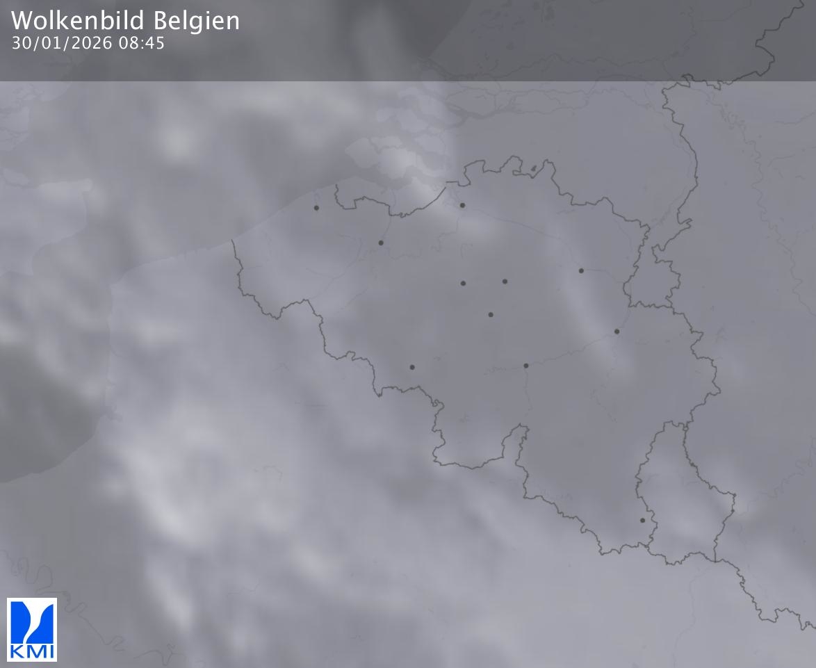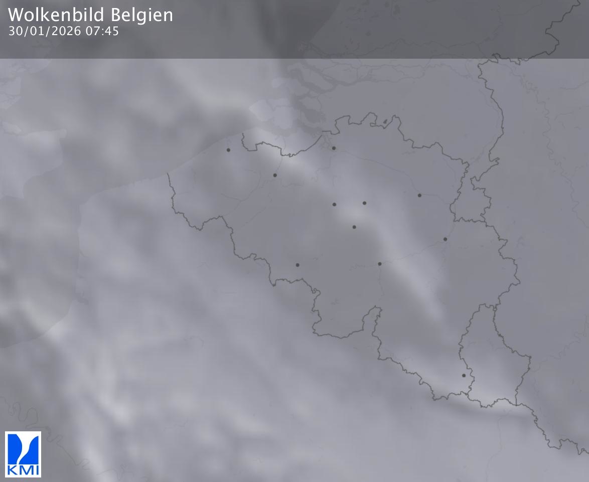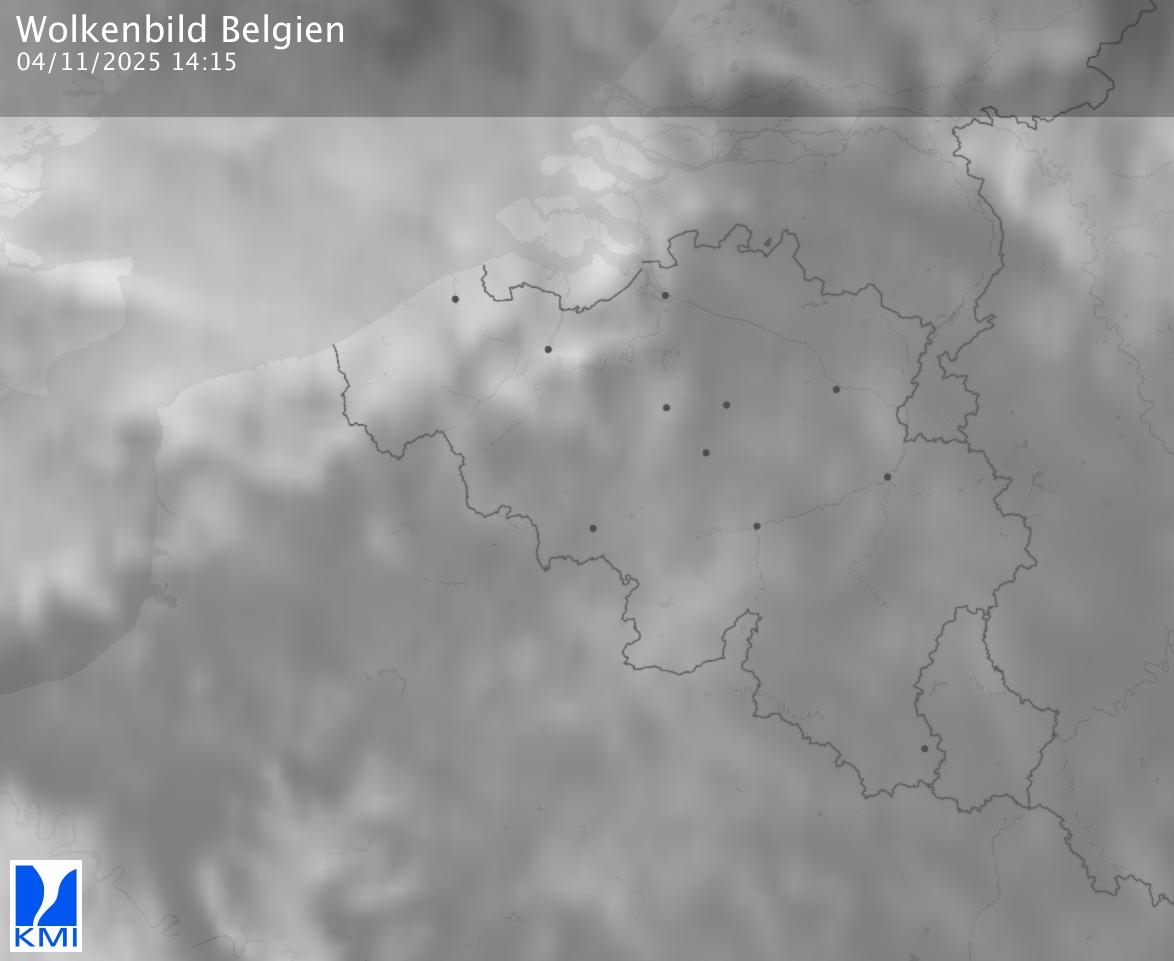 Das Wolkenbild Belgiens ist eine Kombination der sichtbaren und Infrarotkanäle des Satelliten.