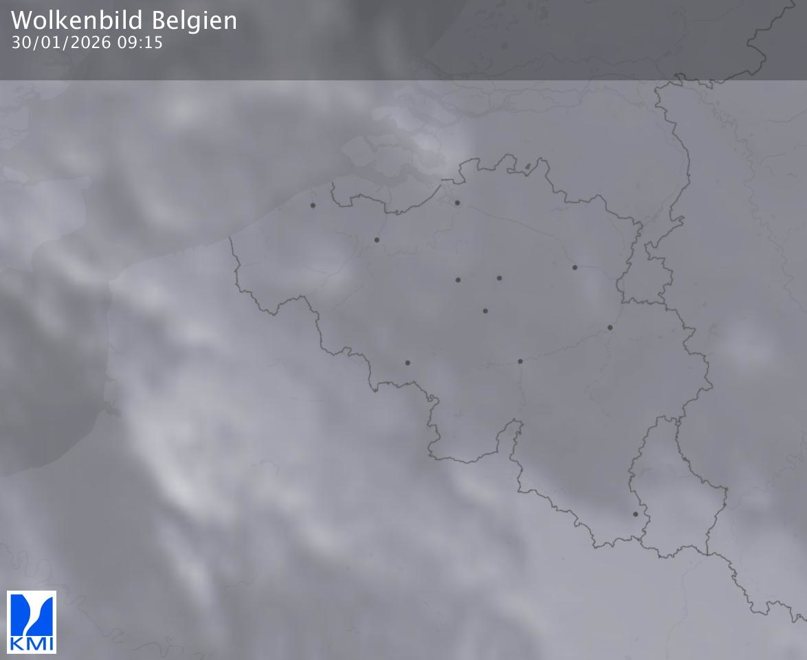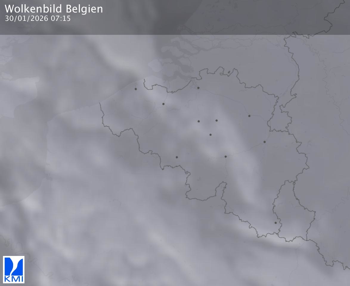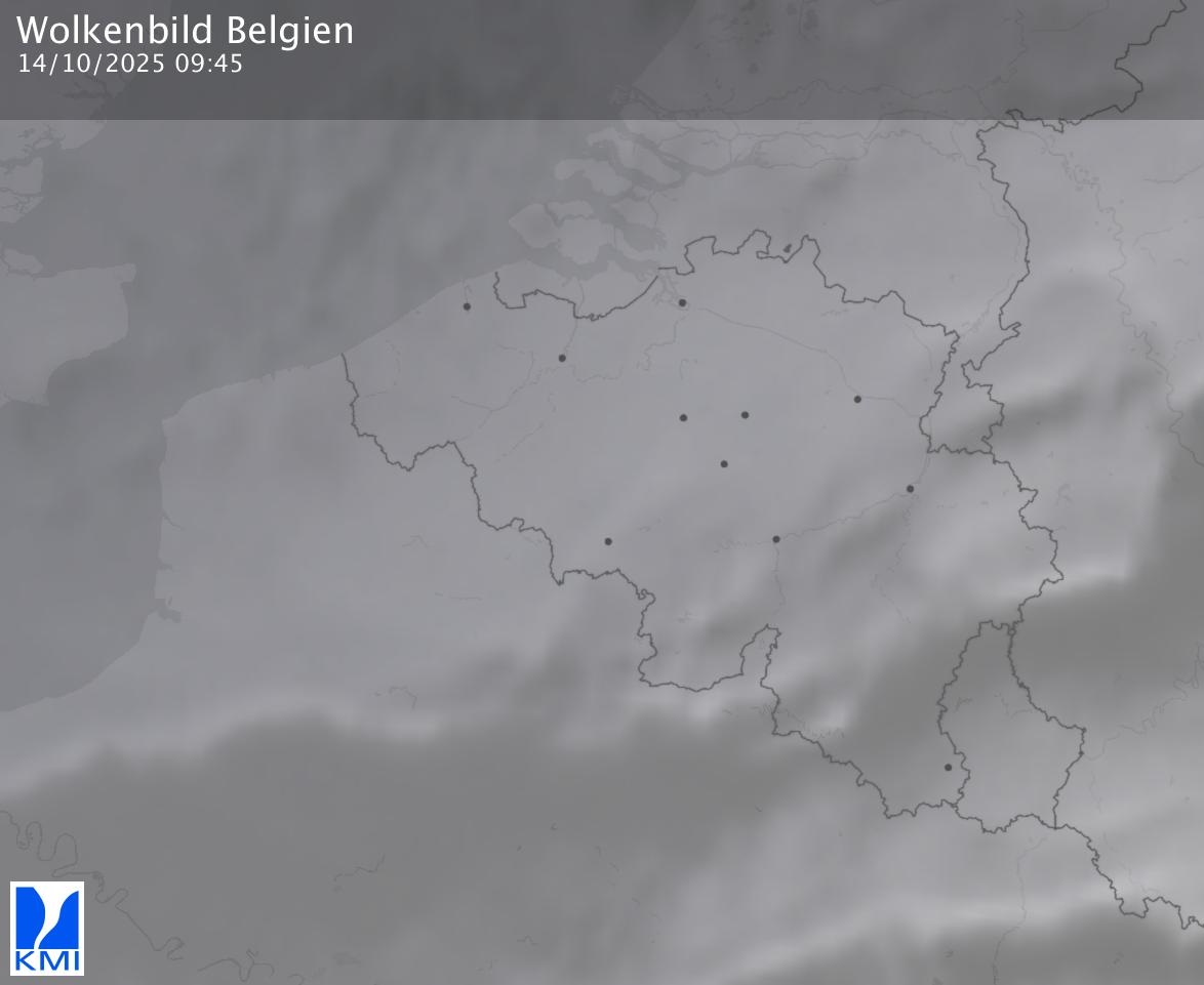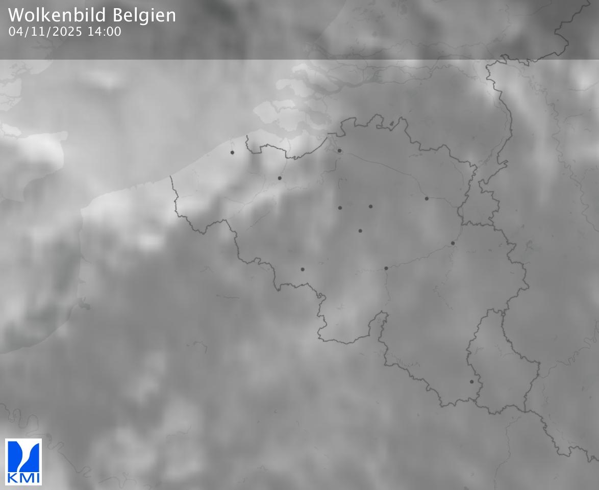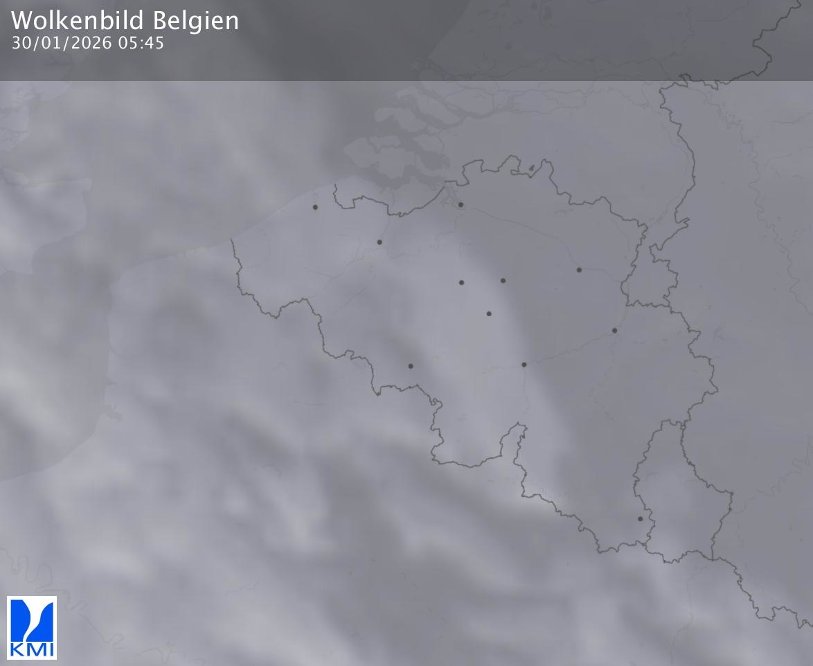 Das Wolkenbild Belgiens ist eine Kombination der sichtbaren und Infrarotkanäle des Satelliten.