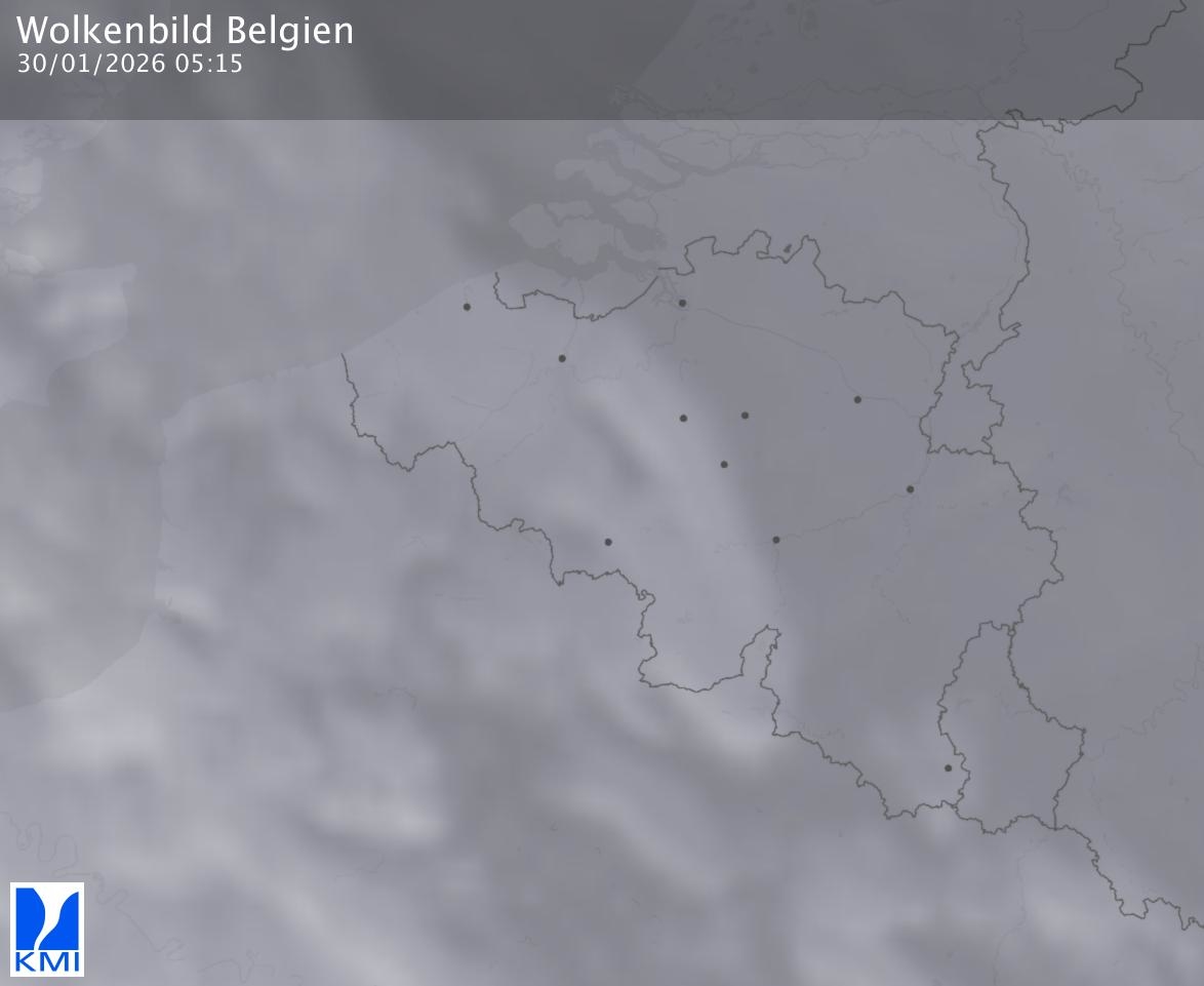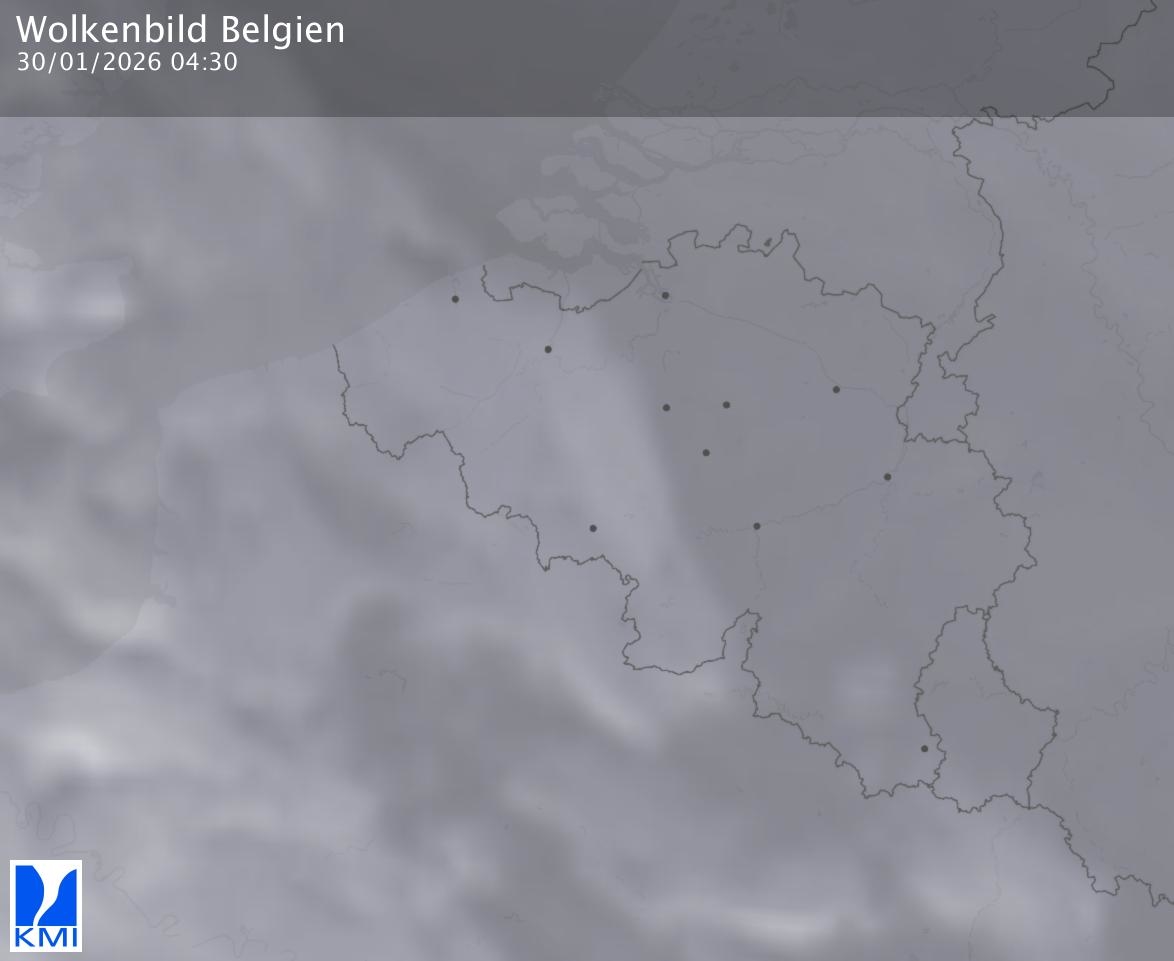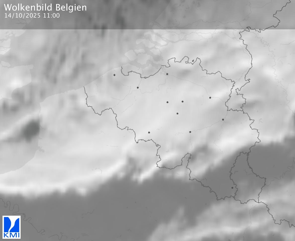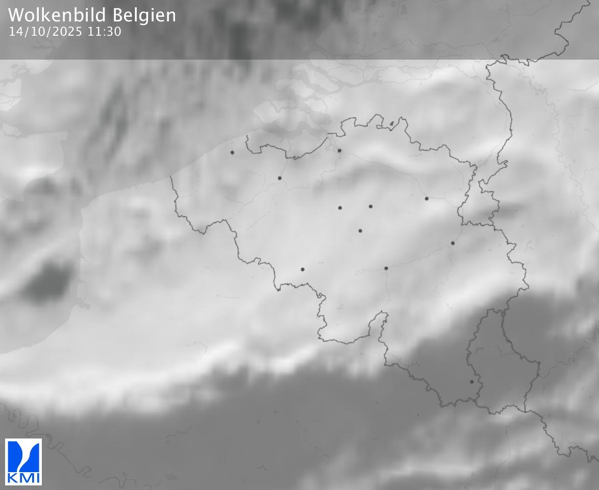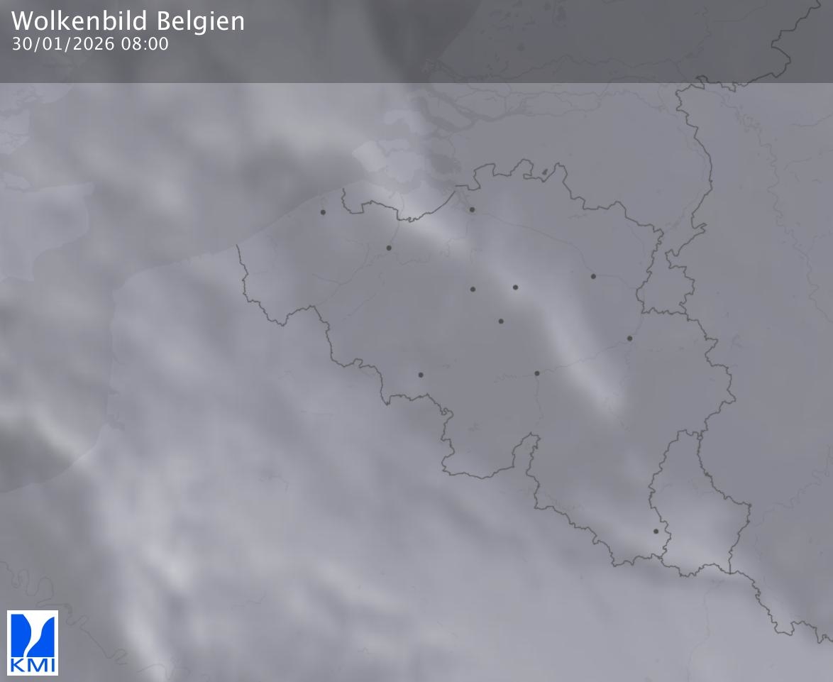 Das Wolkenbild Belgiens ist eine Kombination der sichtbaren und Infrarotkanäle des Satelliten.