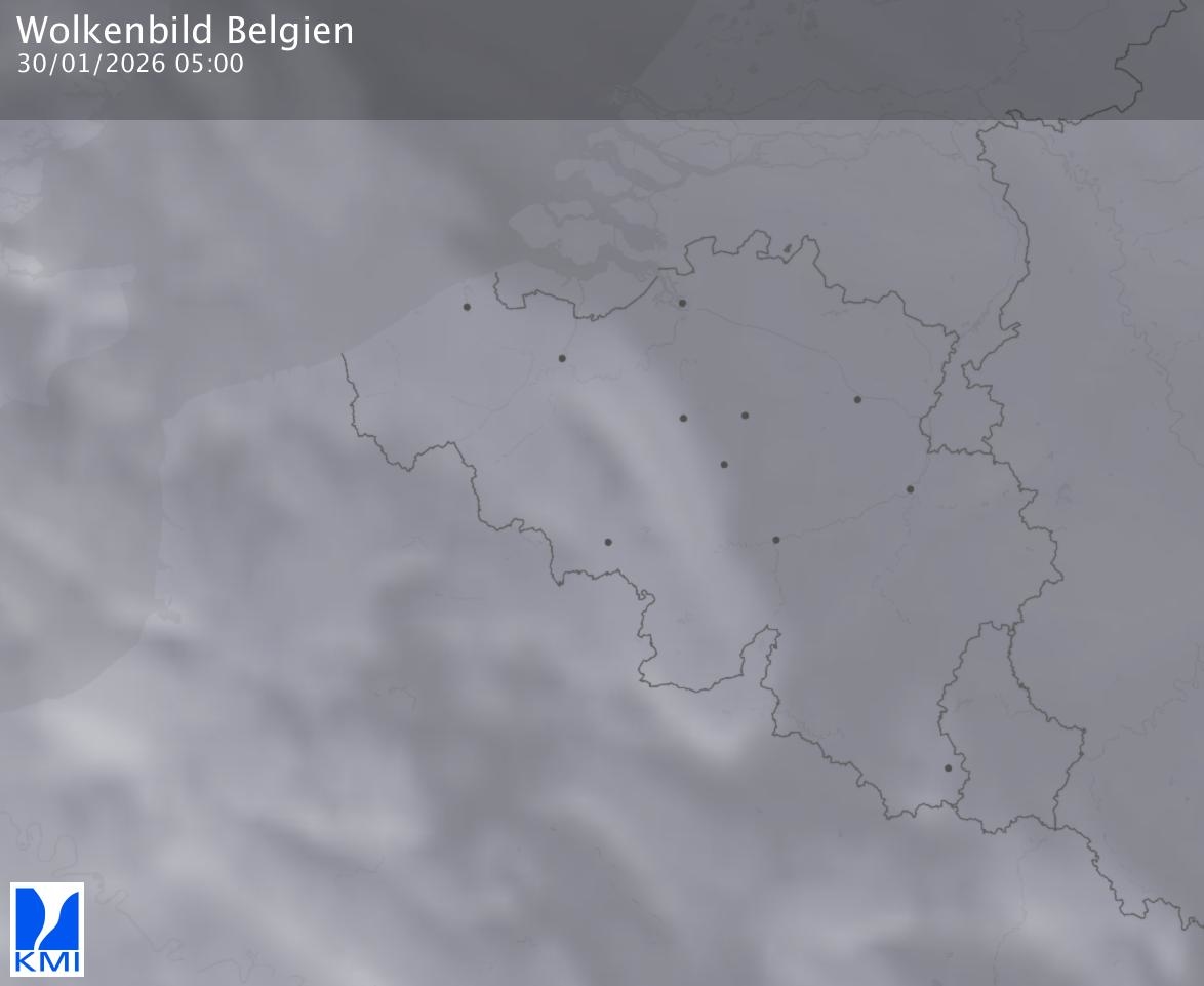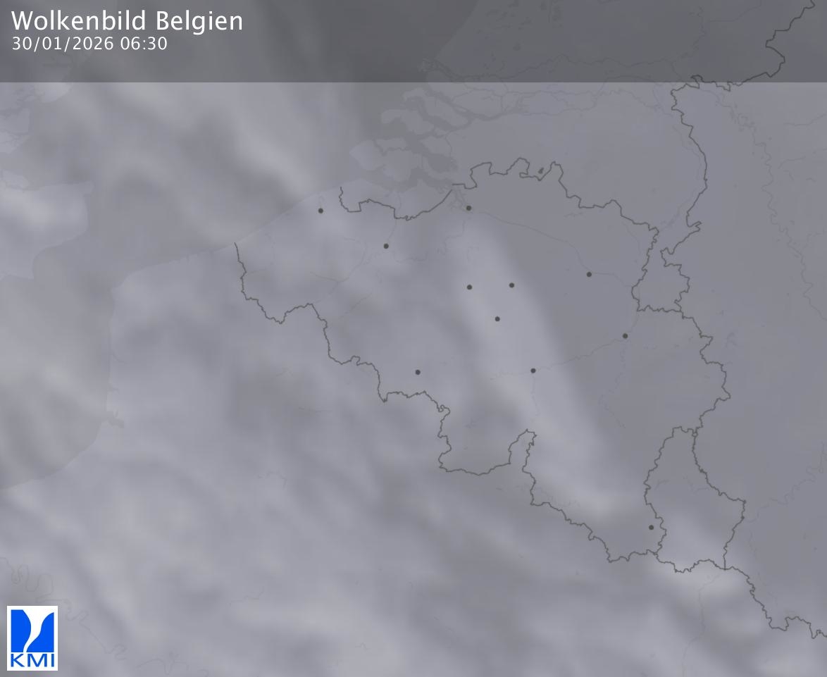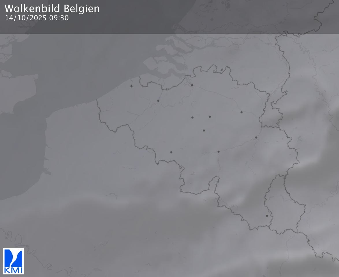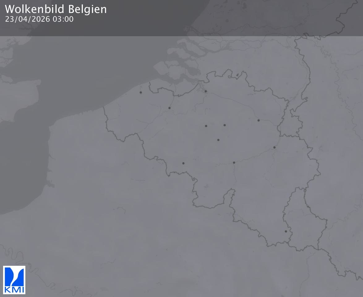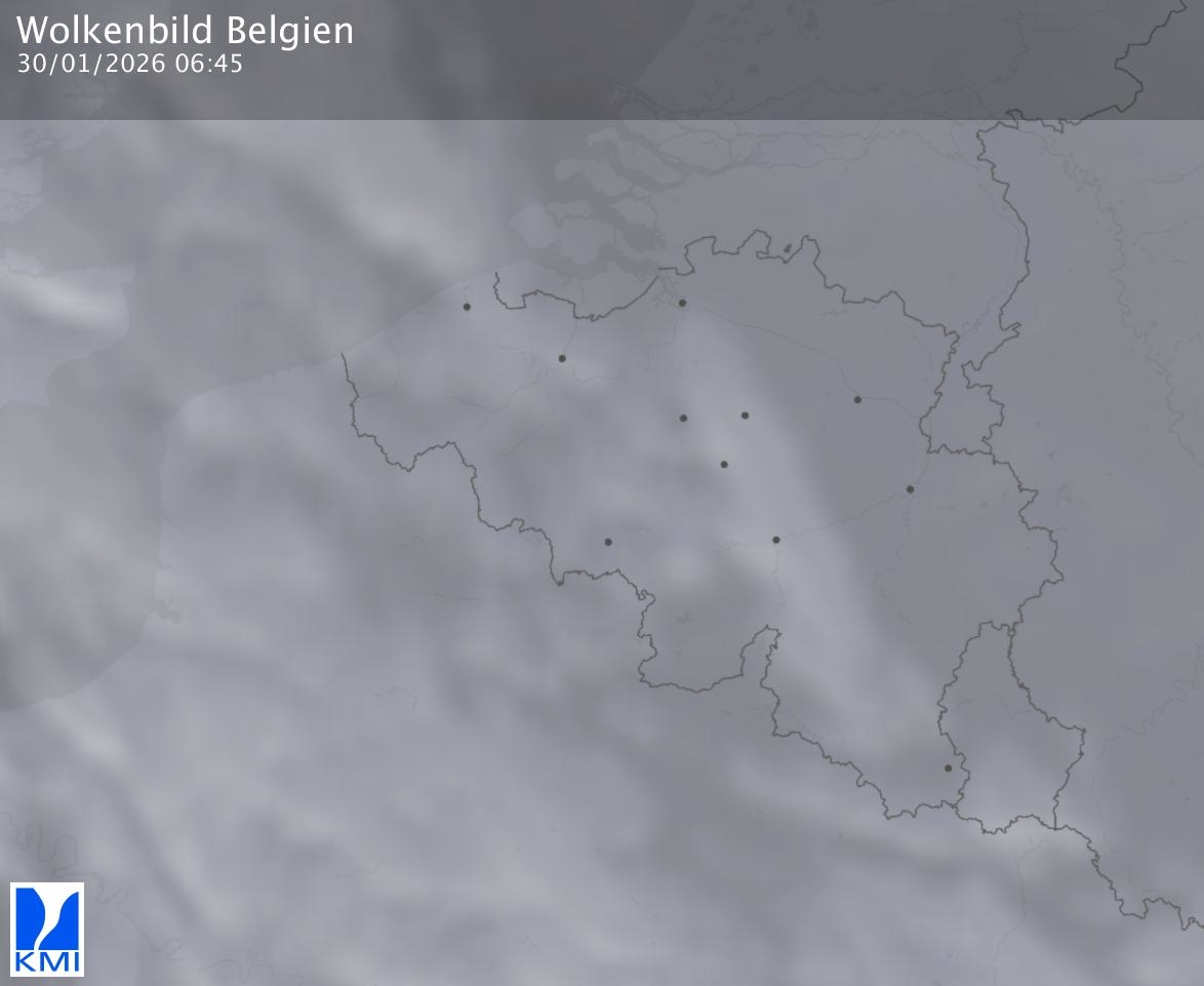 Das Wolkenbild Belgiens ist eine Kombination der sichtbaren und Infrarotkanäle des Satelliten.