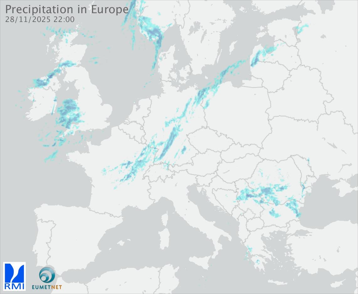 This animation shows the fallen precipitation observed by the radars of the European members of the OPERA program of Eumetnet.
