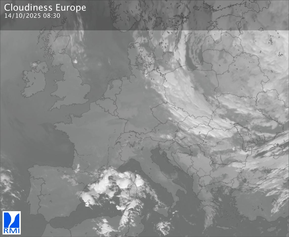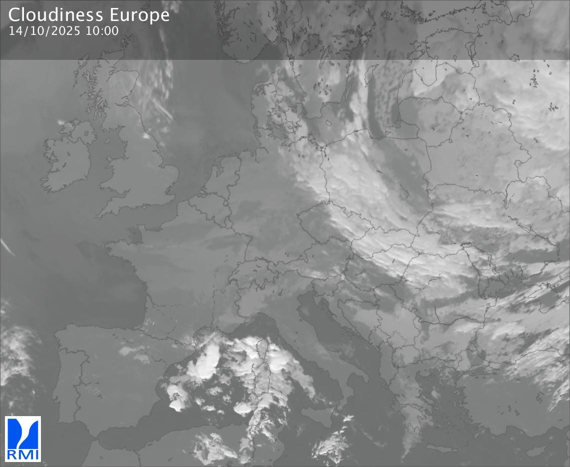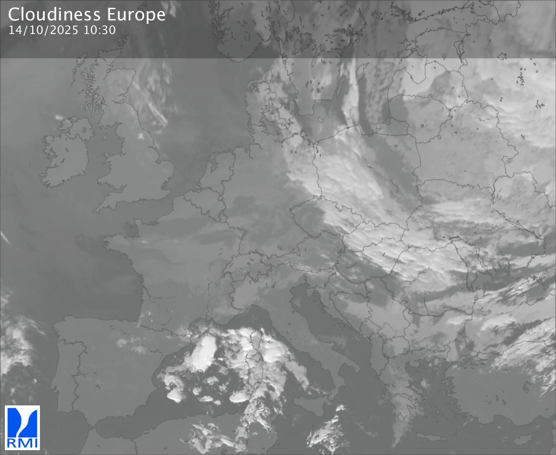 The infrared channels of Meteosat are sensitive to the temperature of the objects and allow to detect clouds day and night. The clouds are indeed colder than the cloud free surface. In the infrared imagery the clouds appear as bright as they are cold and are then located higher in the atmosphere.