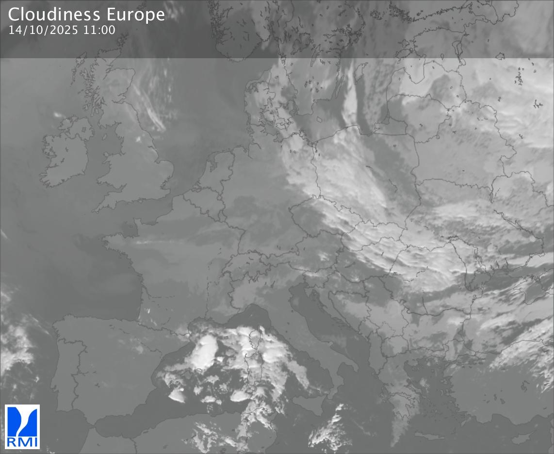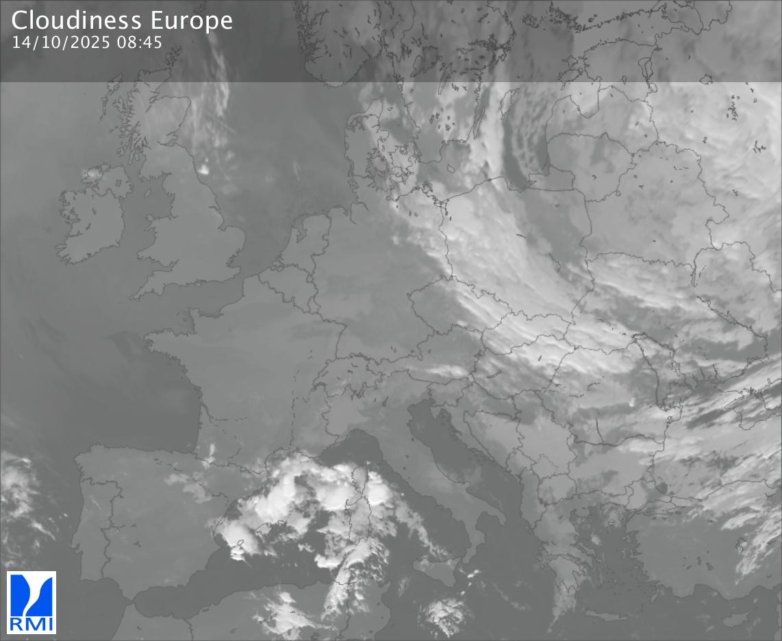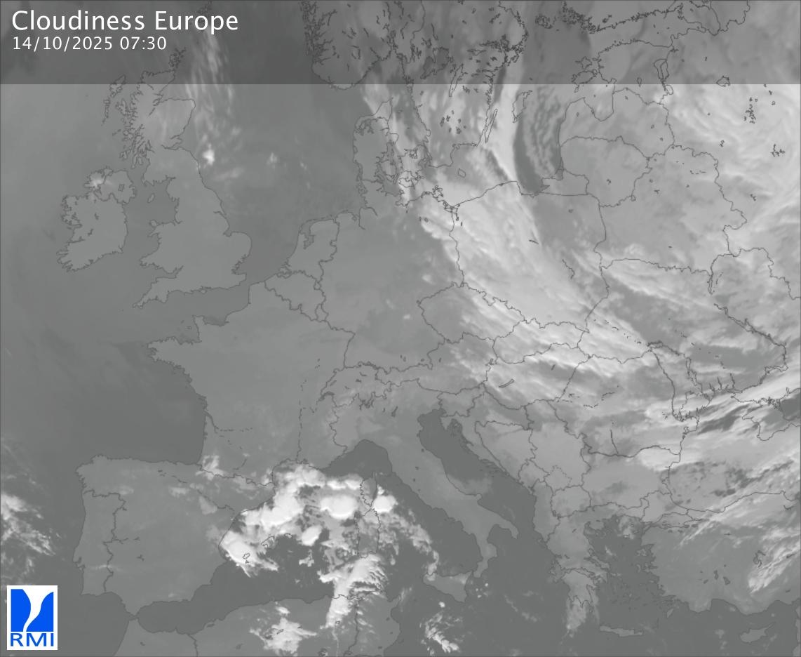 The infrared channels of Meteosat are sensitive to the temperature of the objects and allow to detect clouds day and night. The clouds are indeed colder than the cloud free surface. In the infrared imagery the clouds appear as bright as they are cold and are then located higher in the atmosphere.