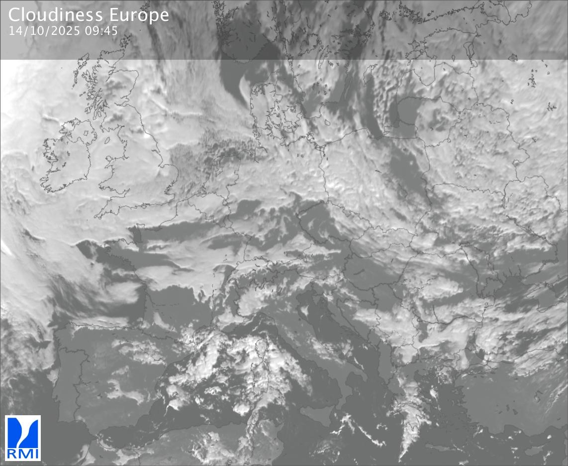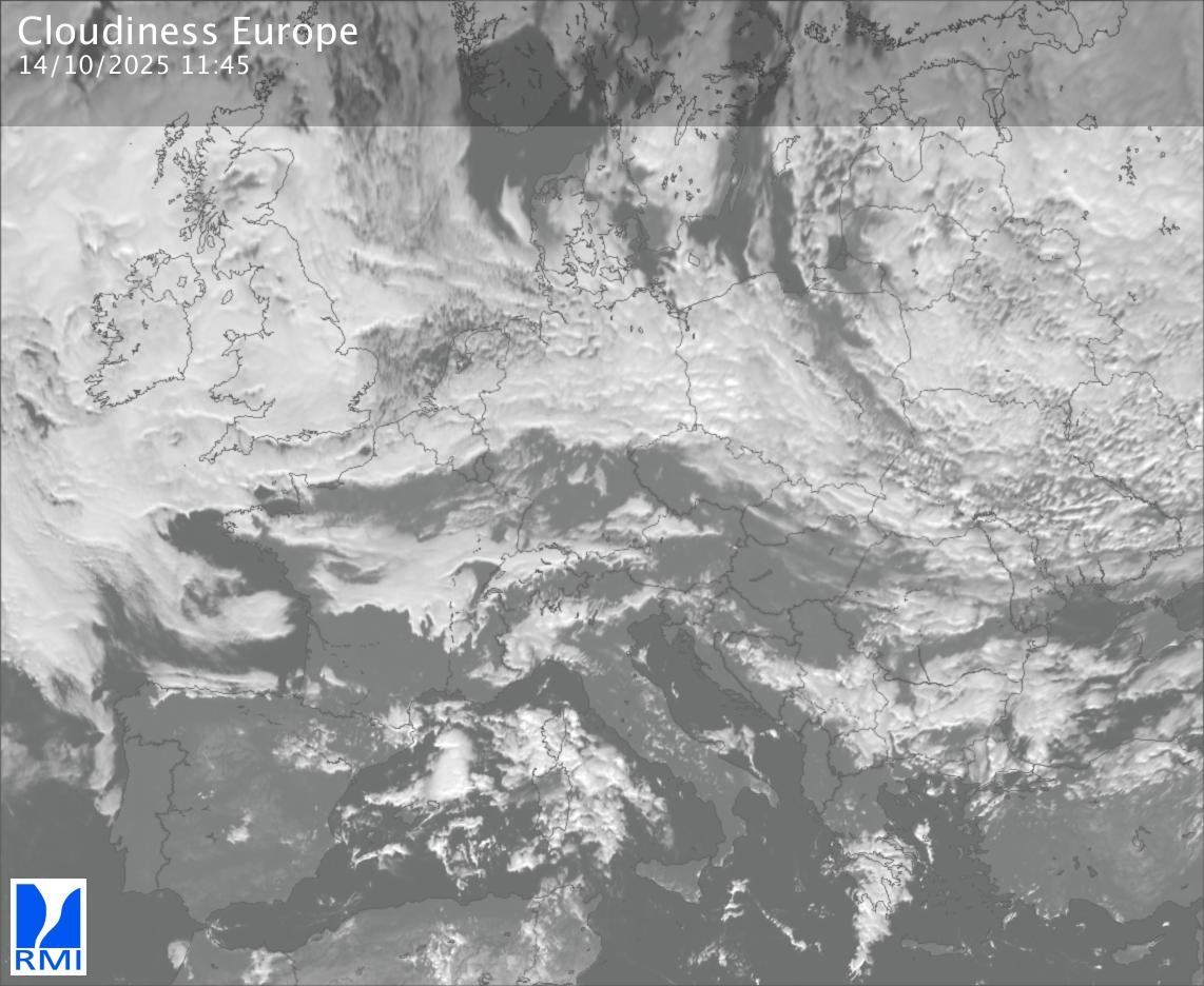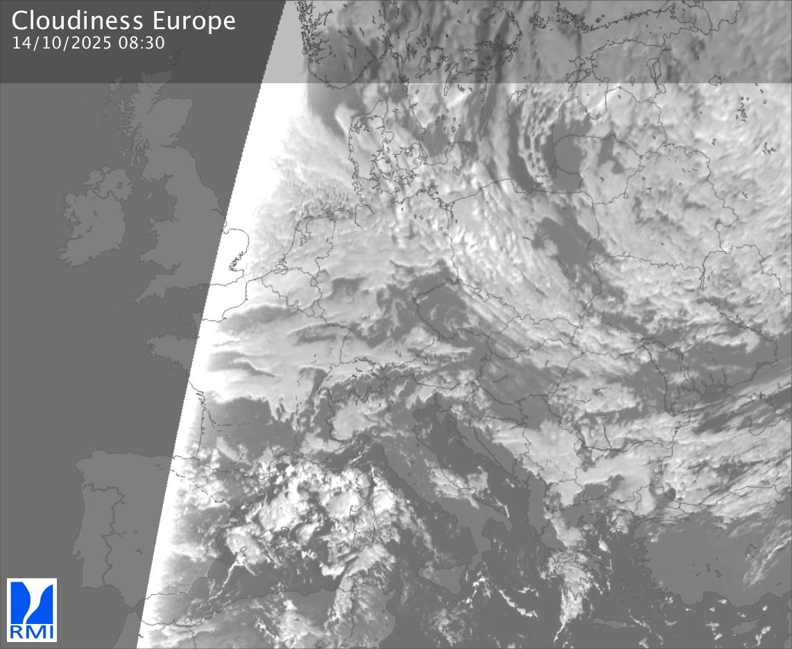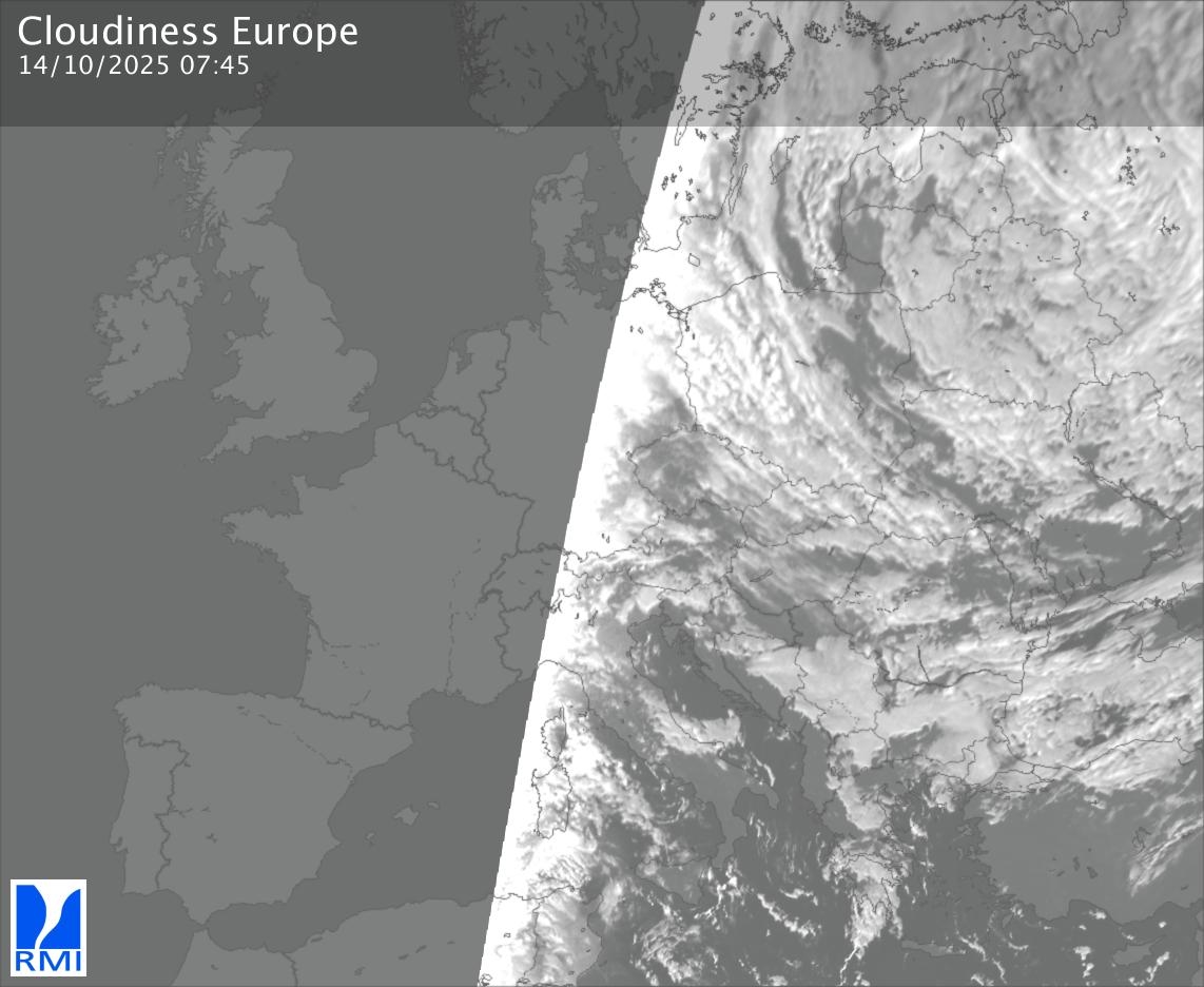 The visible channels of Meteosat are sensitive to the reflection of the solar radiation on the objects and allow to detect clouds during daytime. In the visible imagery the clouds appear as bright as they reflect the light and are then thicker.