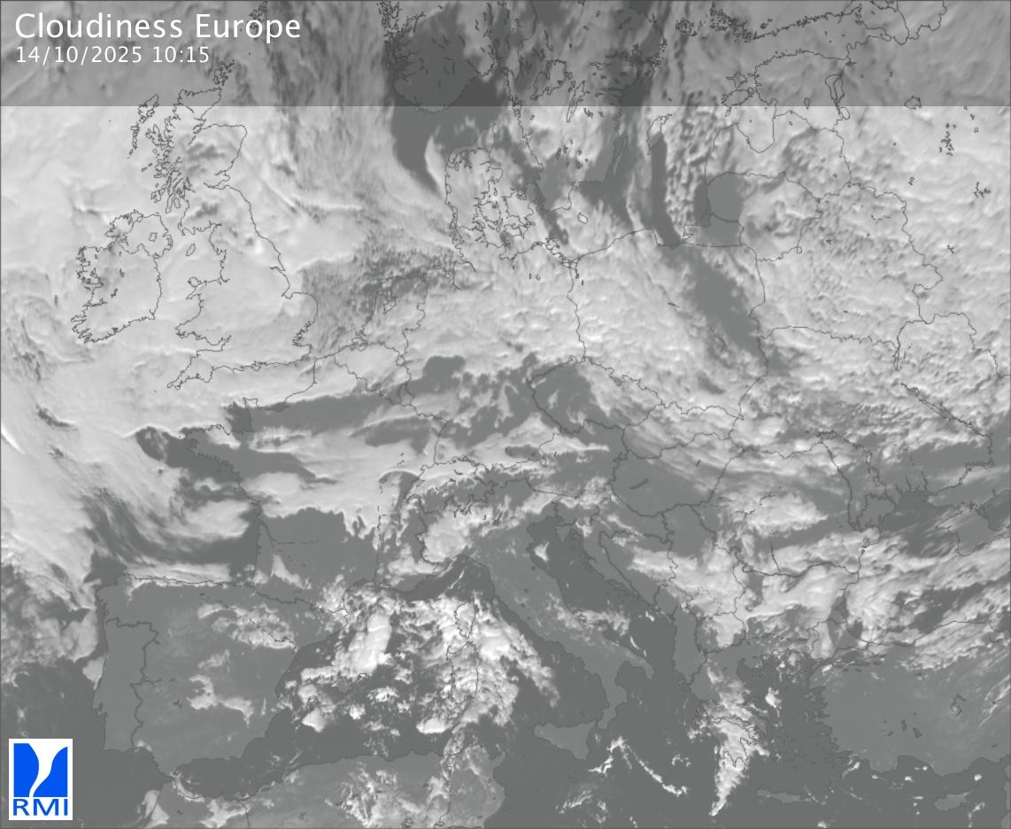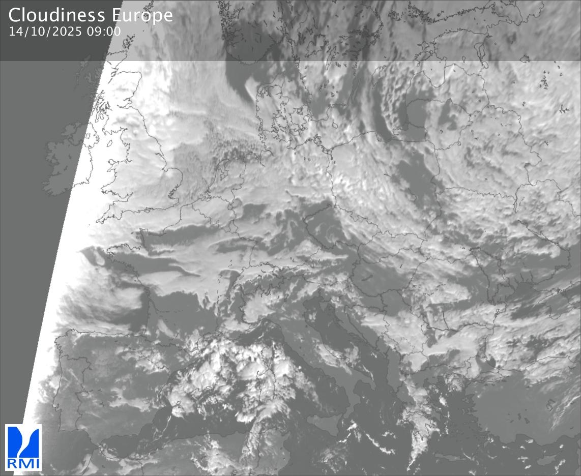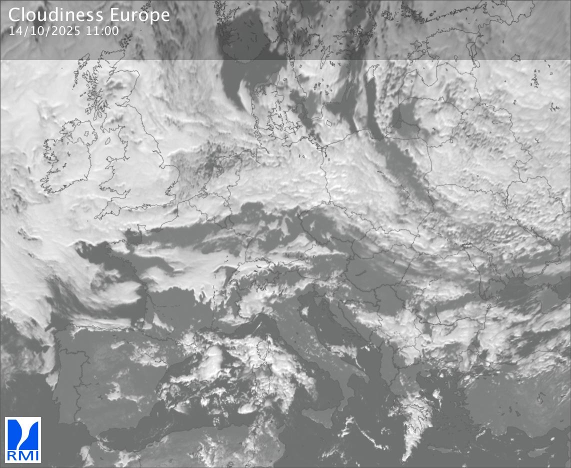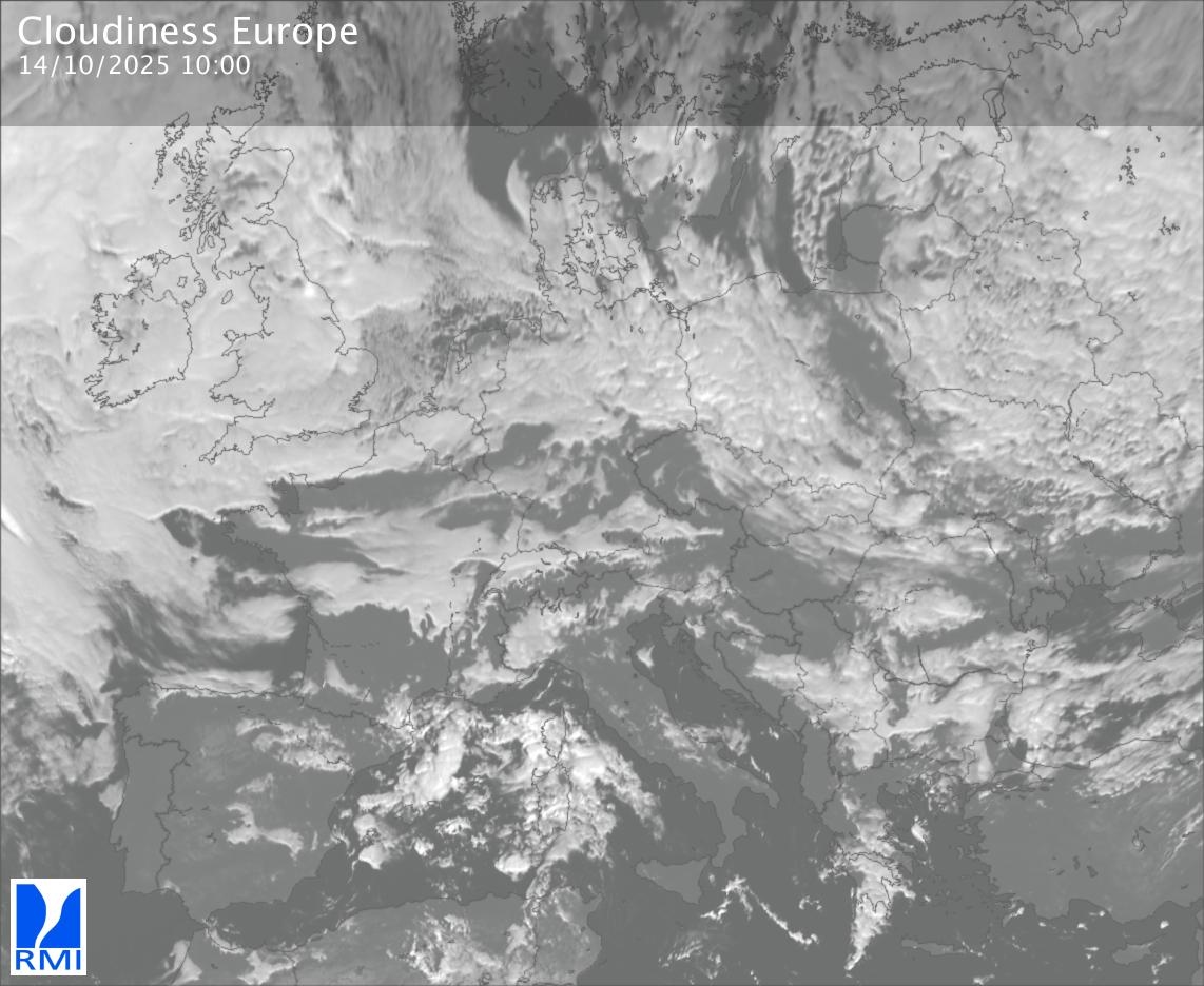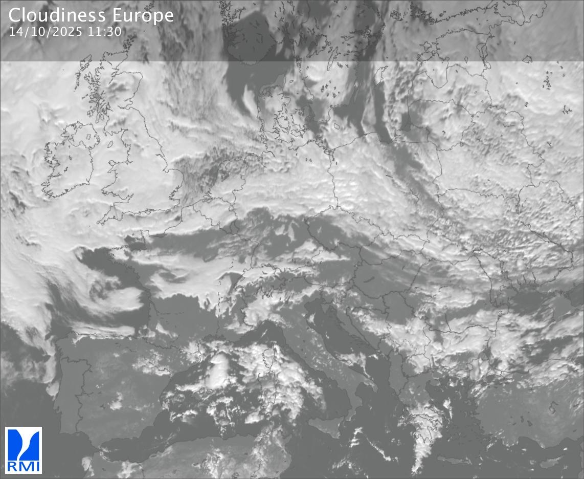 The visible channels of Meteosat are sensitive to the reflection of the solar radiation on the objects and allow to detect clouds during daytime. In the visible imagery the clouds appear as bright as they reflect the light and are then thicker.