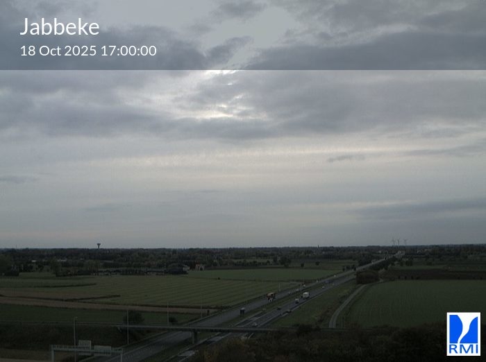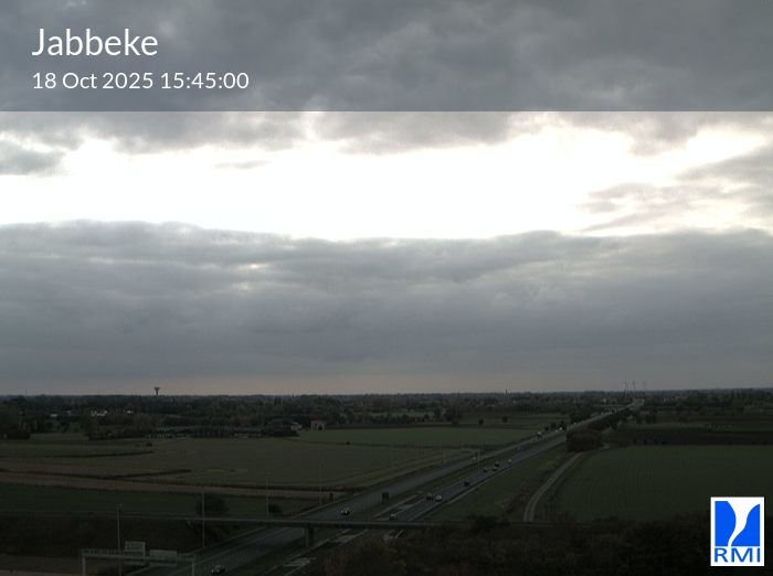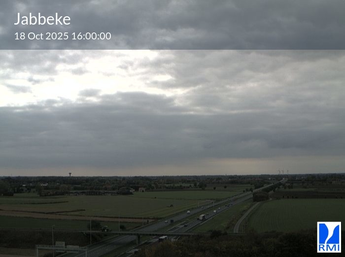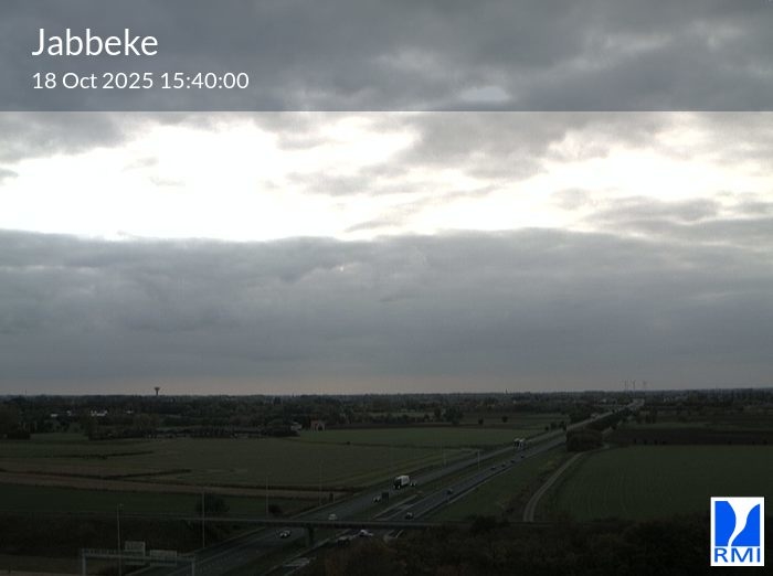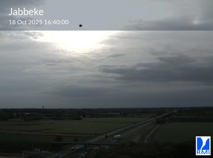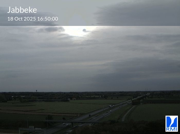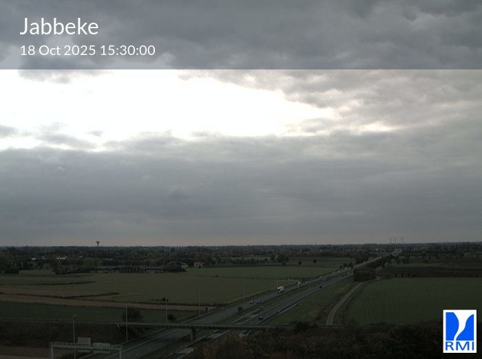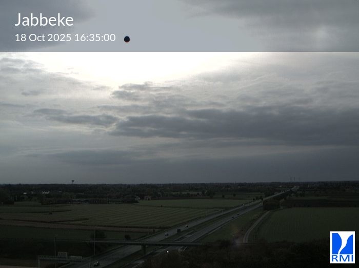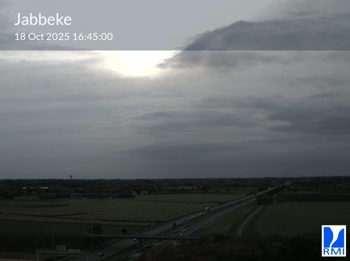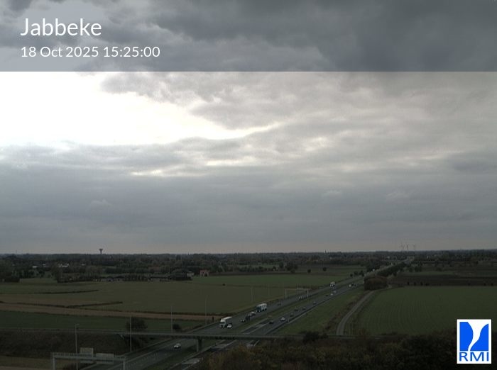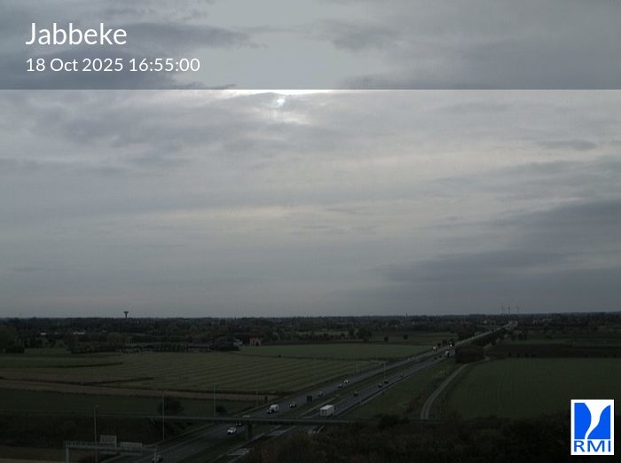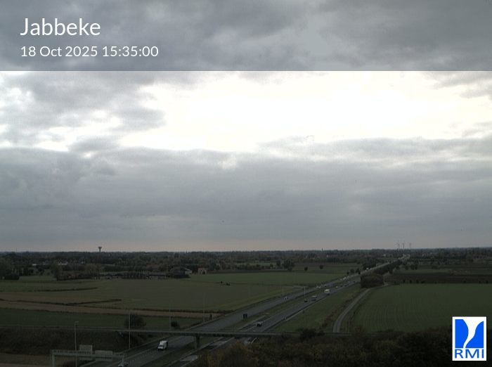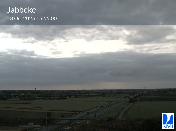 The webcam is located on the tower of the RMI weather radar in Jabbeke at the junction of the E40 highway towards France and the A10 to the coast (Ostend).