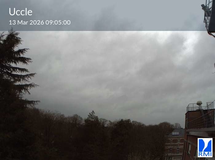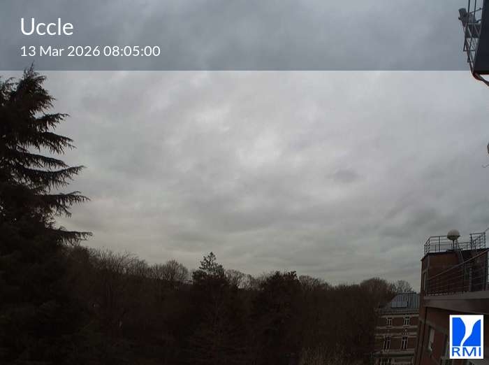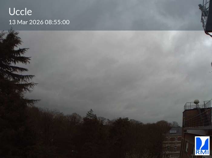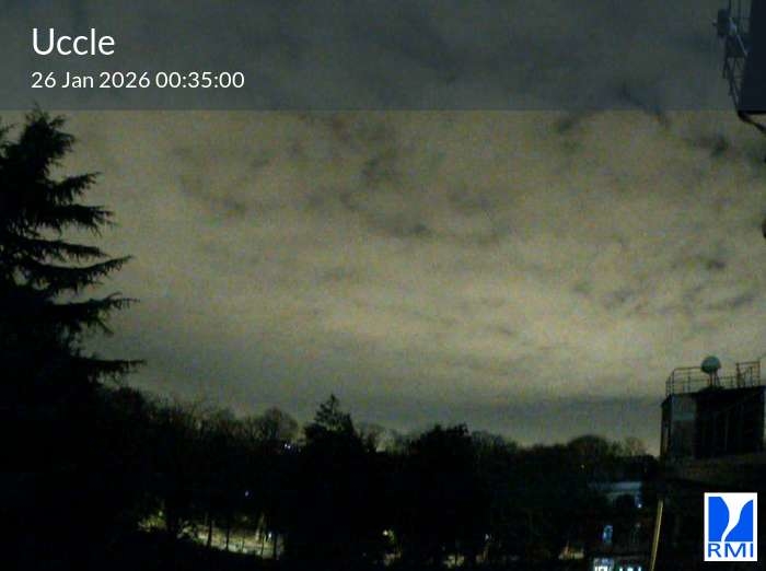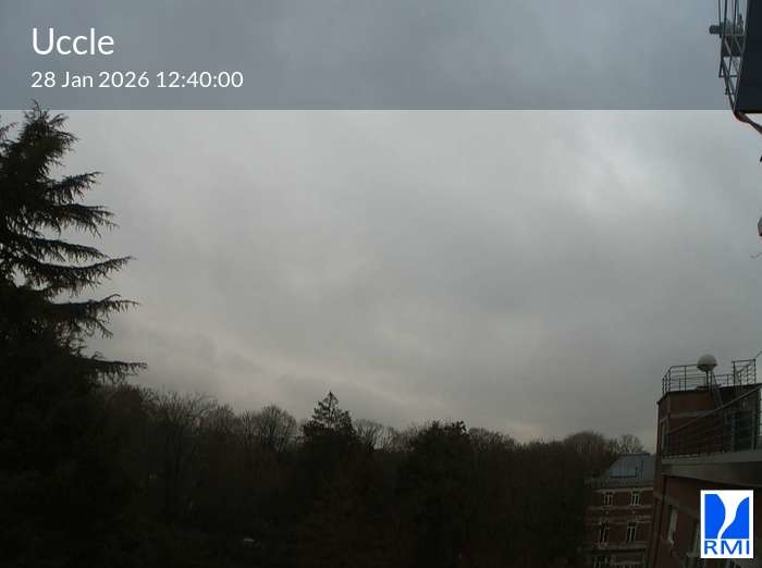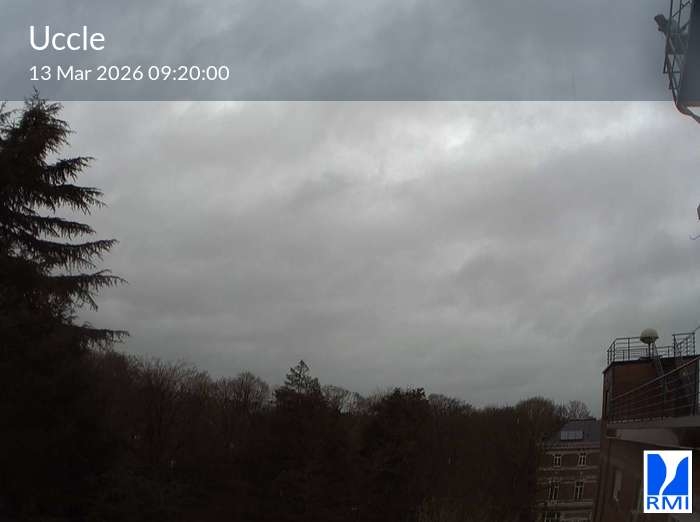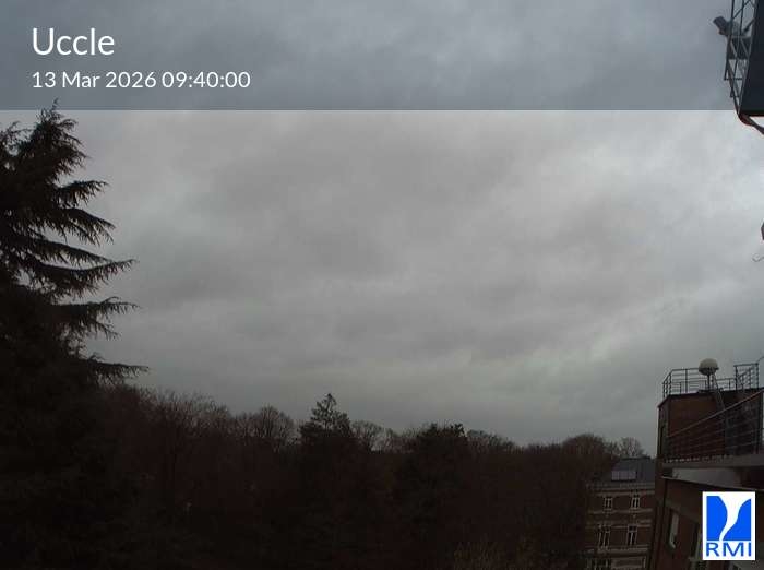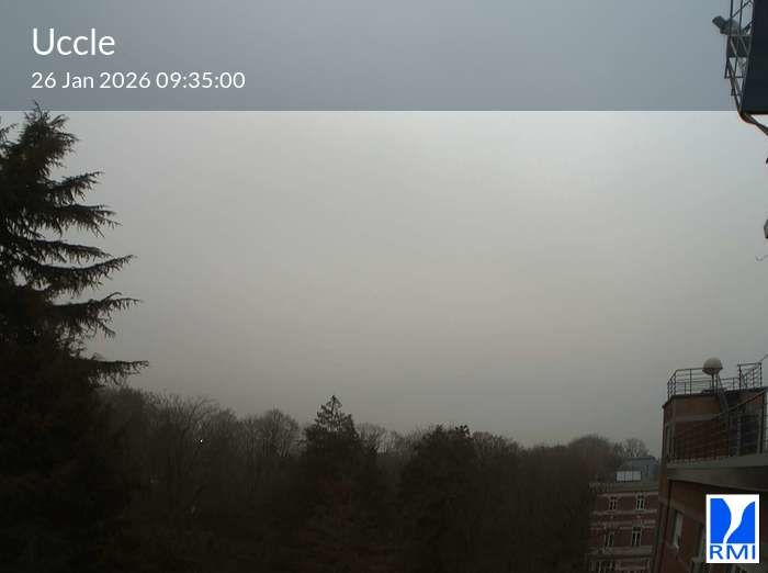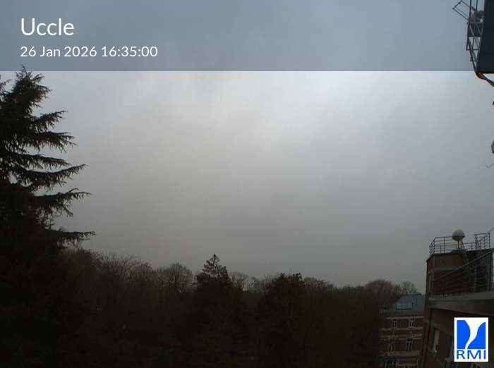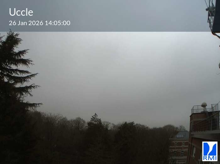 This webcam is situated on top of the observation tower in the RMI park in Uccle and is oriented to the North to avoid direct sunlight at noon.