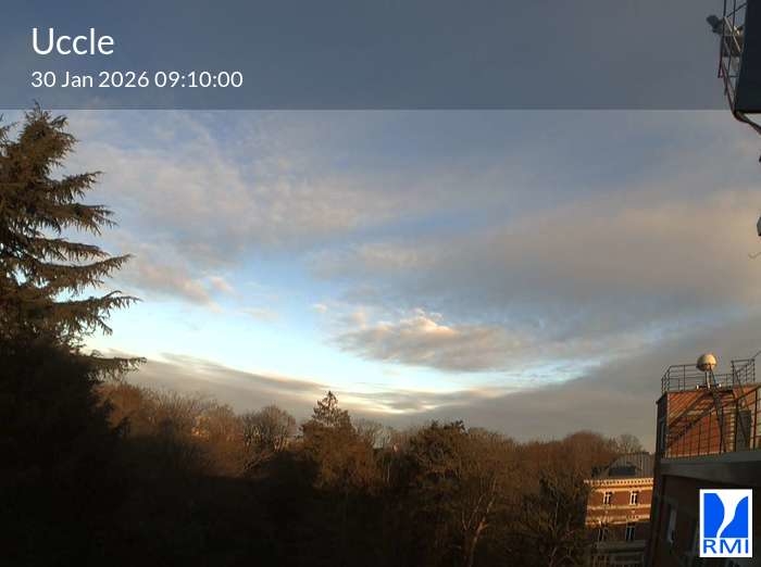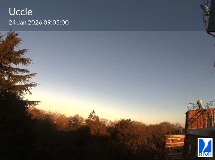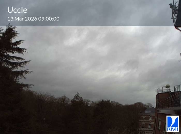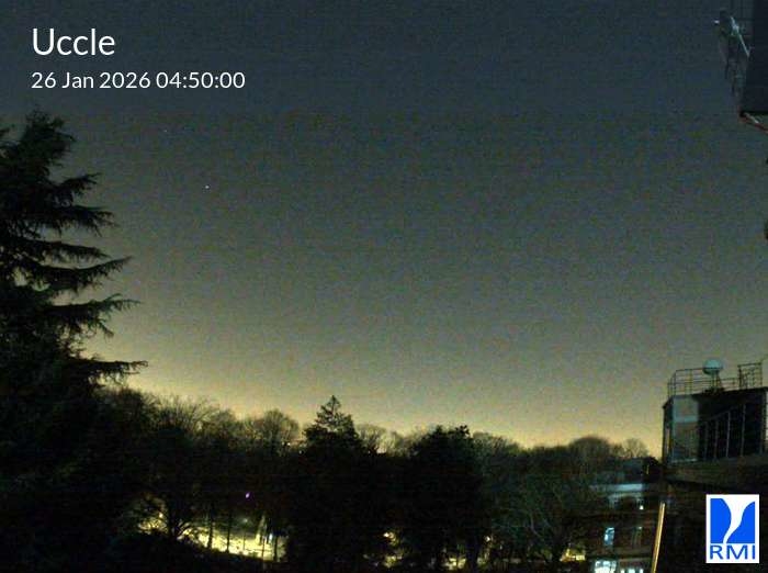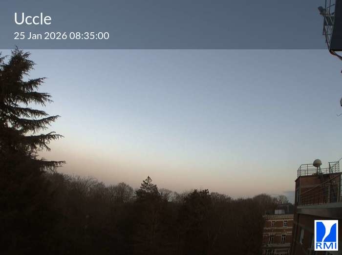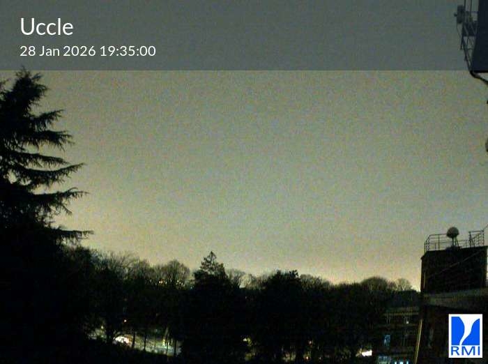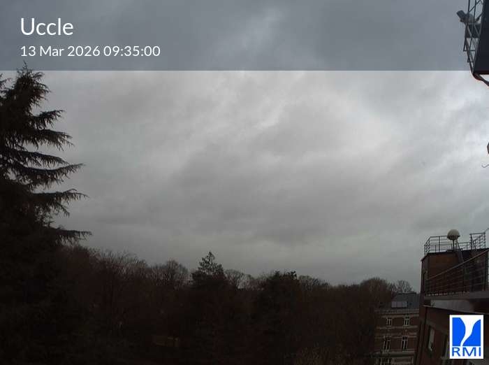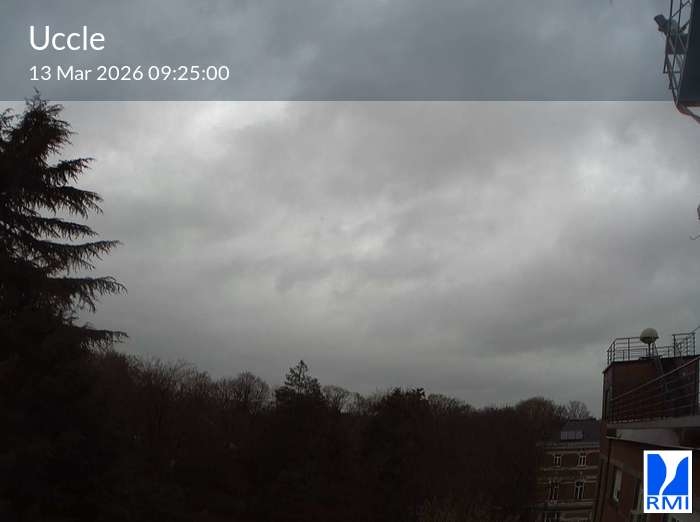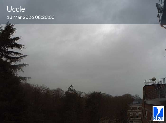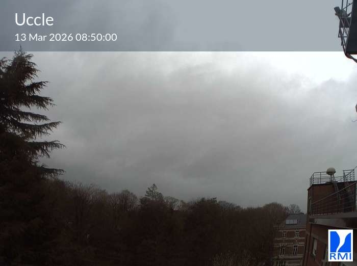 This webcam is situated on top of the observation tower in the RMI park in Uccle and is oriented to the North to avoid direct sunlight at noon.