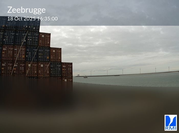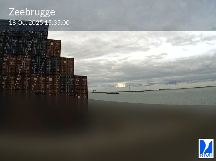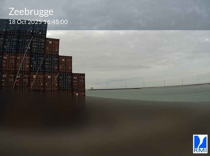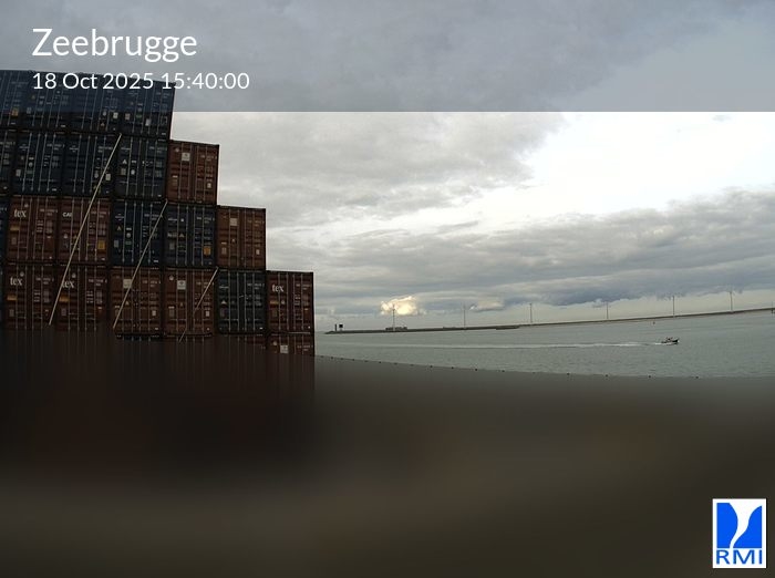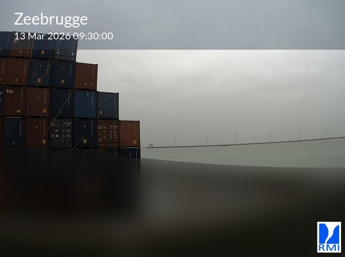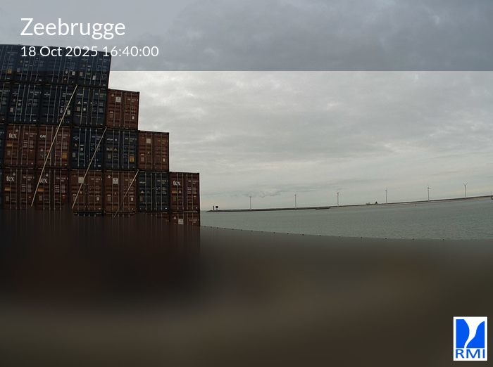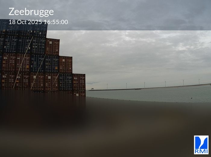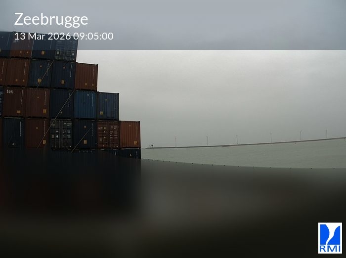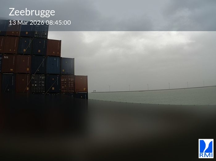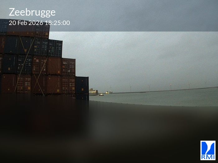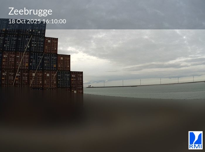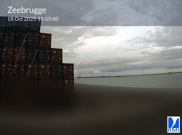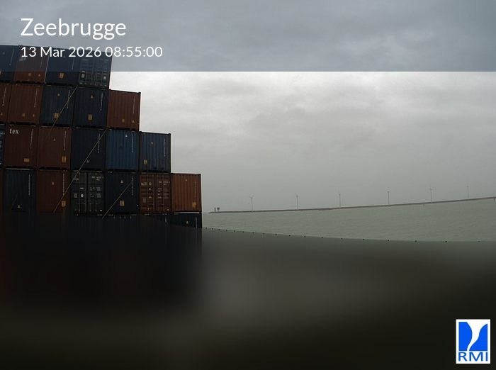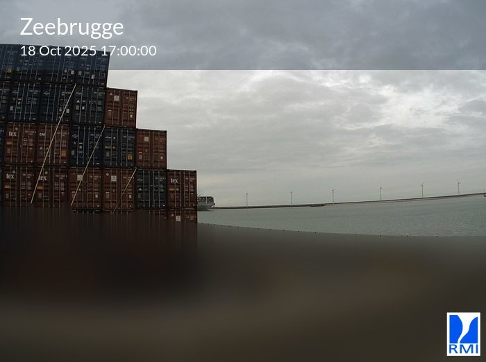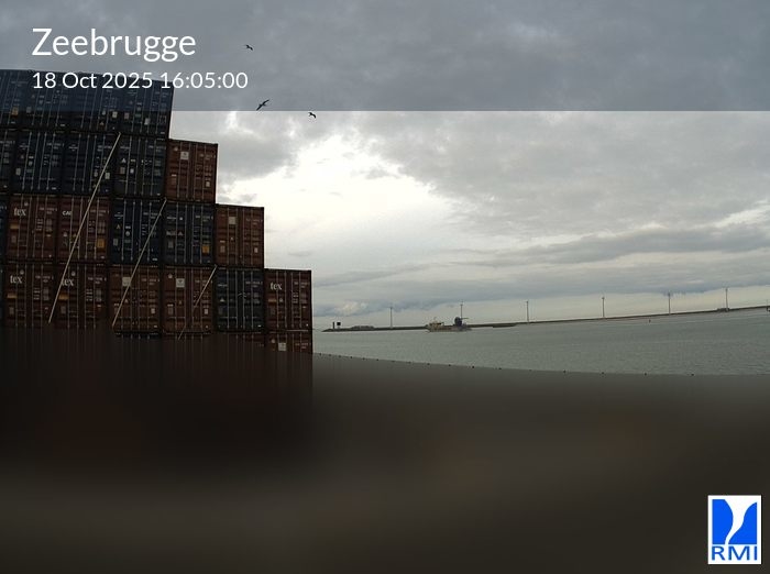 The webcam is situated on the Leopold II dam in the port of Zeebrugge and it is oriented to the North to avoid direct sunlight at noon.