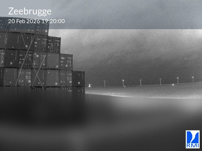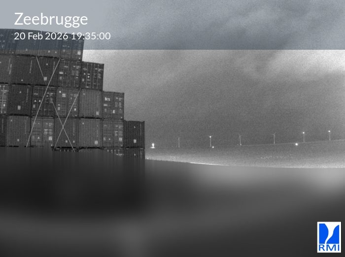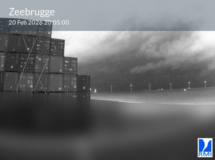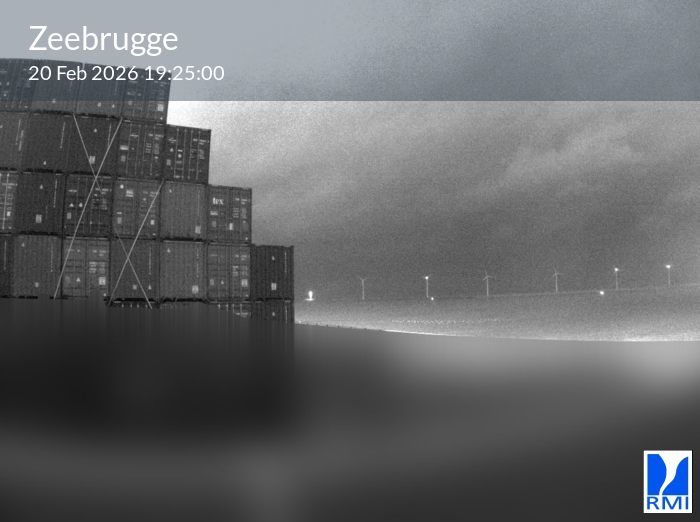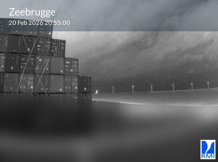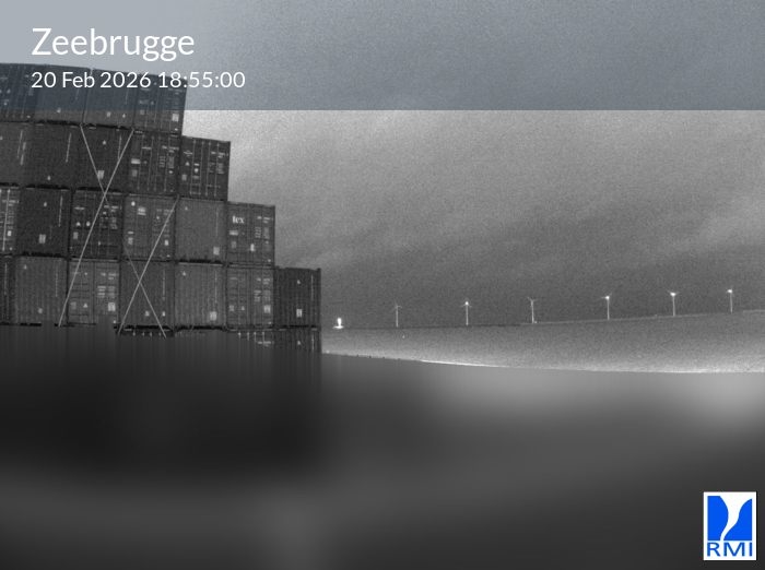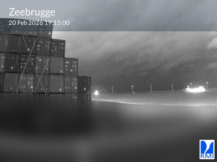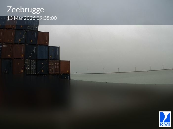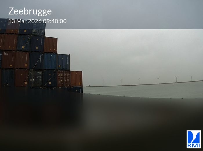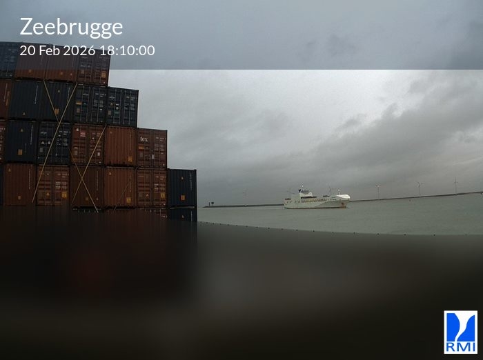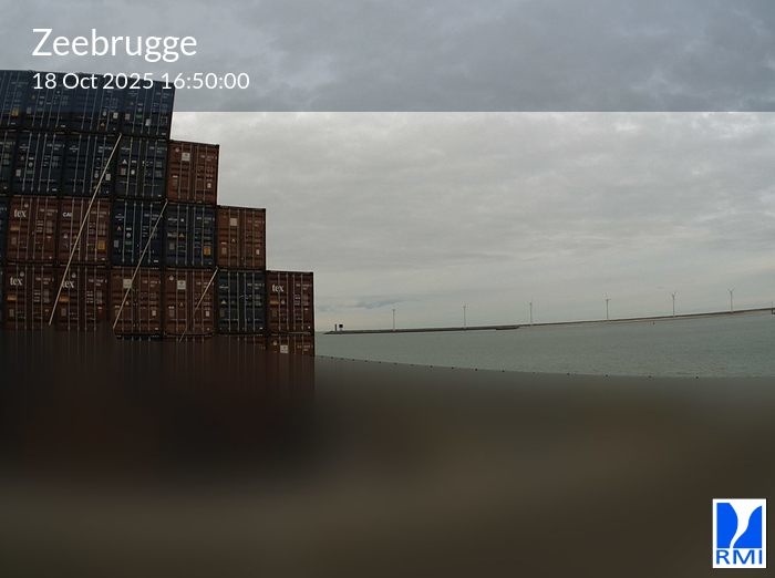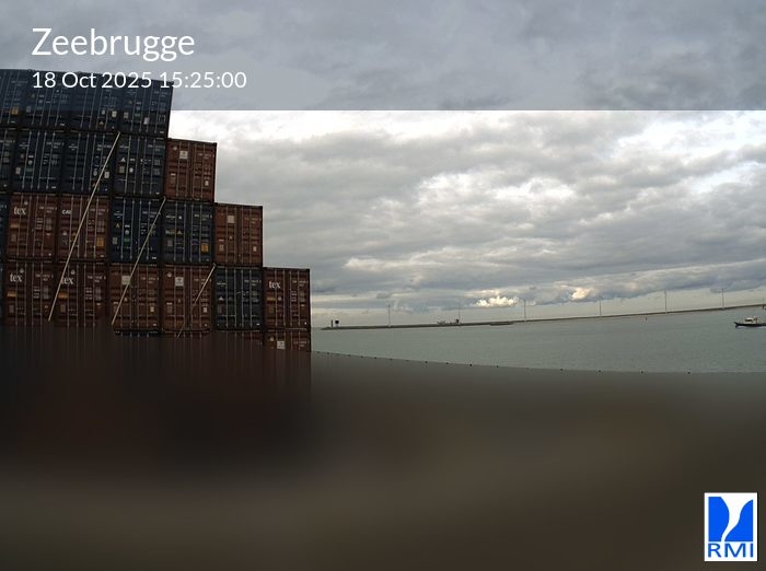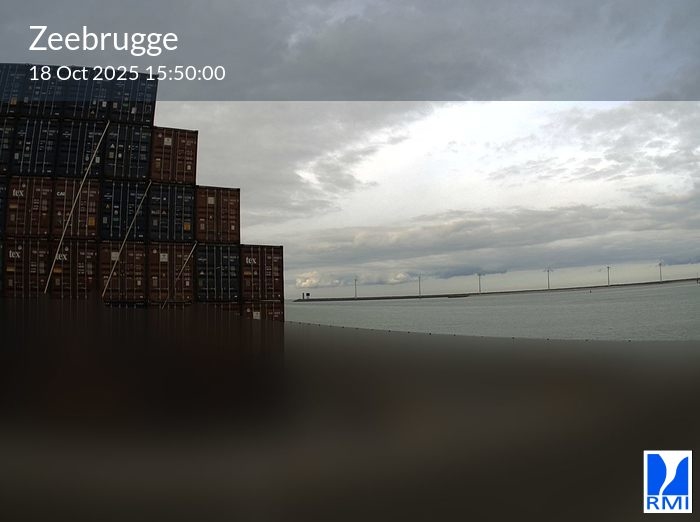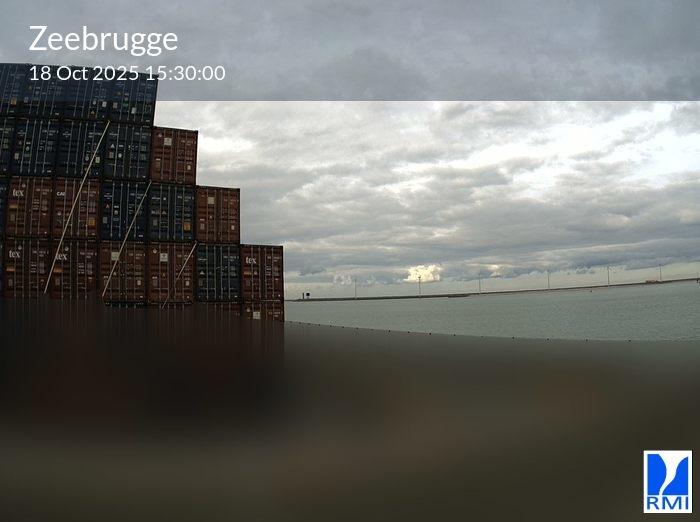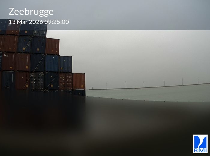 The webcam is situated on the Leopold II dam in the port of Zeebrugge and it is oriented to the North to avoid direct sunlight at noon.