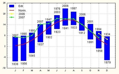 Record des températures en Belgique : depuis le début des observations climatologiques à Bruxelles (en 1833), les 12 années les plus chaudes sont comptabilisées dans les vingt dernières années. L’année 2006 bat le précédent record de 1989.