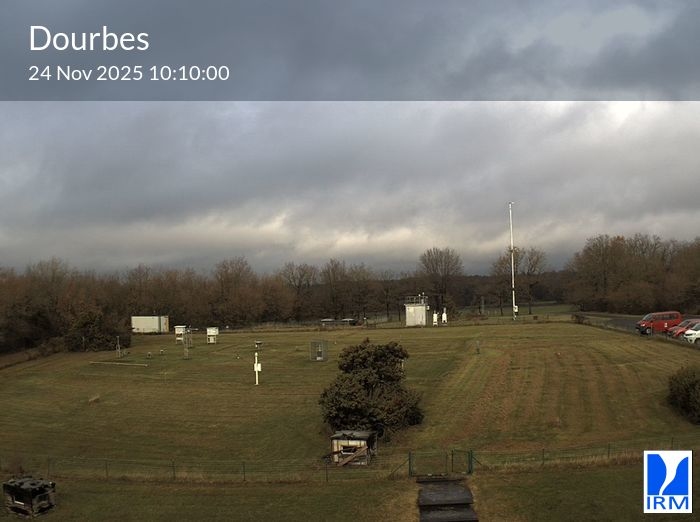 La webcam est installée au sommet du bâtimemt principal du Centre de Physique du Globe de l'IRM à Dourbes (Province de Namur). Elle est dirigée vers le nord afin d'éviter les rayons du soleil à midi.