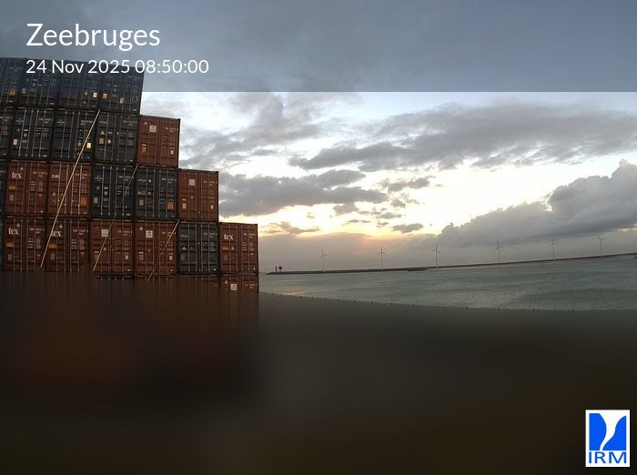 La webcam est située sur la digue Léopold II dans le port de Zeebrugge (Côte belge - Flandre Occidentale) ; elle est orientée vers le nord afin d'éviter l'incidence directe des rayons du soleil à midi.