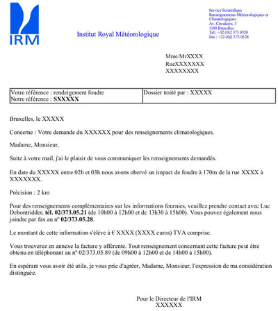 Vous souhaitez savoir s'il y a eu de l'orage à un endroit précis et à une période précise. Demandez une carte ou lettre d'orage du phénomène en question.