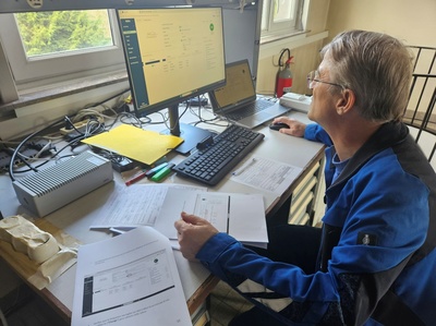 Fig. 1: De ozonsondeoperator gebruikt de nieuwe radio (grijze doos links) en nieuwe software bij het initializeren van de radiosondepeiling