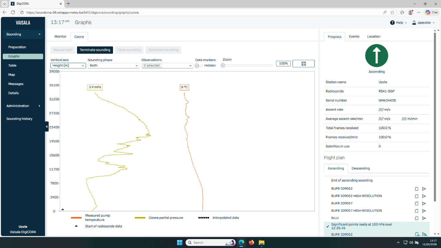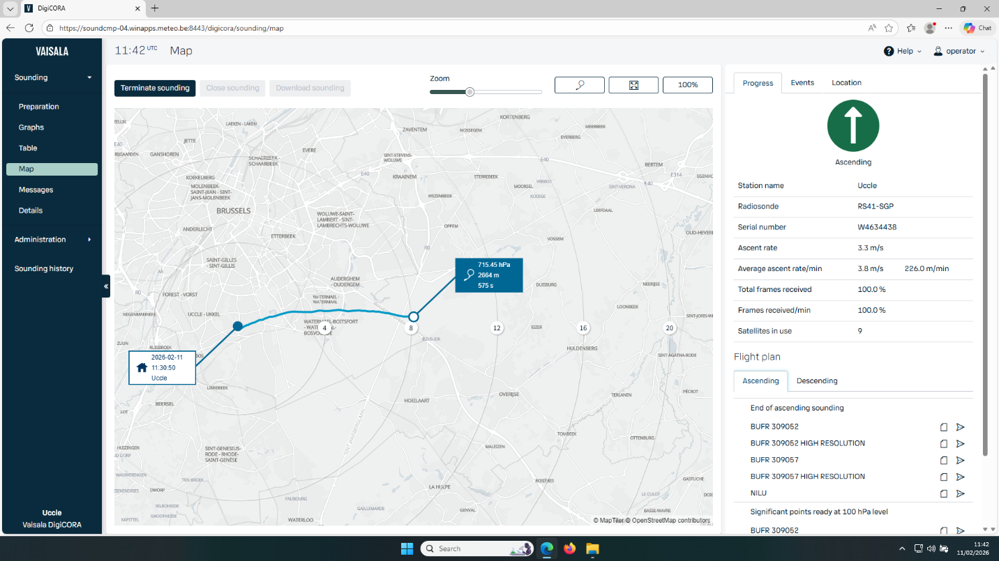 De allereerste weerballon bij het KMI werd al gelanceerd op 5 april 1906. België was zelfs het tiende land dat meedeed aan internationale ballonmetingen. Gedurende die tijd is de technologie natuurlijk heel wat geëvolueerd. Sinds 1990 gebruiken we een radiopeilingssysteem en radiosondes van de Finse fabrikant Vaisala, pionier en dé wereldleider in radiosondes en meteorologische instrumenten en toepassingen in het algemeen. In 2007 stapten we dan over van het analoge naar digitale radiosondesysteem van Vaisala (DigiCORA MW31) en gebeurde de plaatsbepaling van de radiosonde met GPS-tracking. De huidige antenna’s werden toen ook aangeschaft door het KMI, en een upgrade van de radio zelf (naar MW41) was vereist in 2016, om de gegevens van een nieuw type radiosondes te kunnen ontvangen. Deze maand namen we dan een nieuwe radio in gebruik (Cirrus MW51), maar met behoud dus van de 20-jaar oude antenna’s.