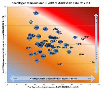 | Herfst | Temperatuur | Neerslag | Neerslagdagen | Zonneschijnduur |