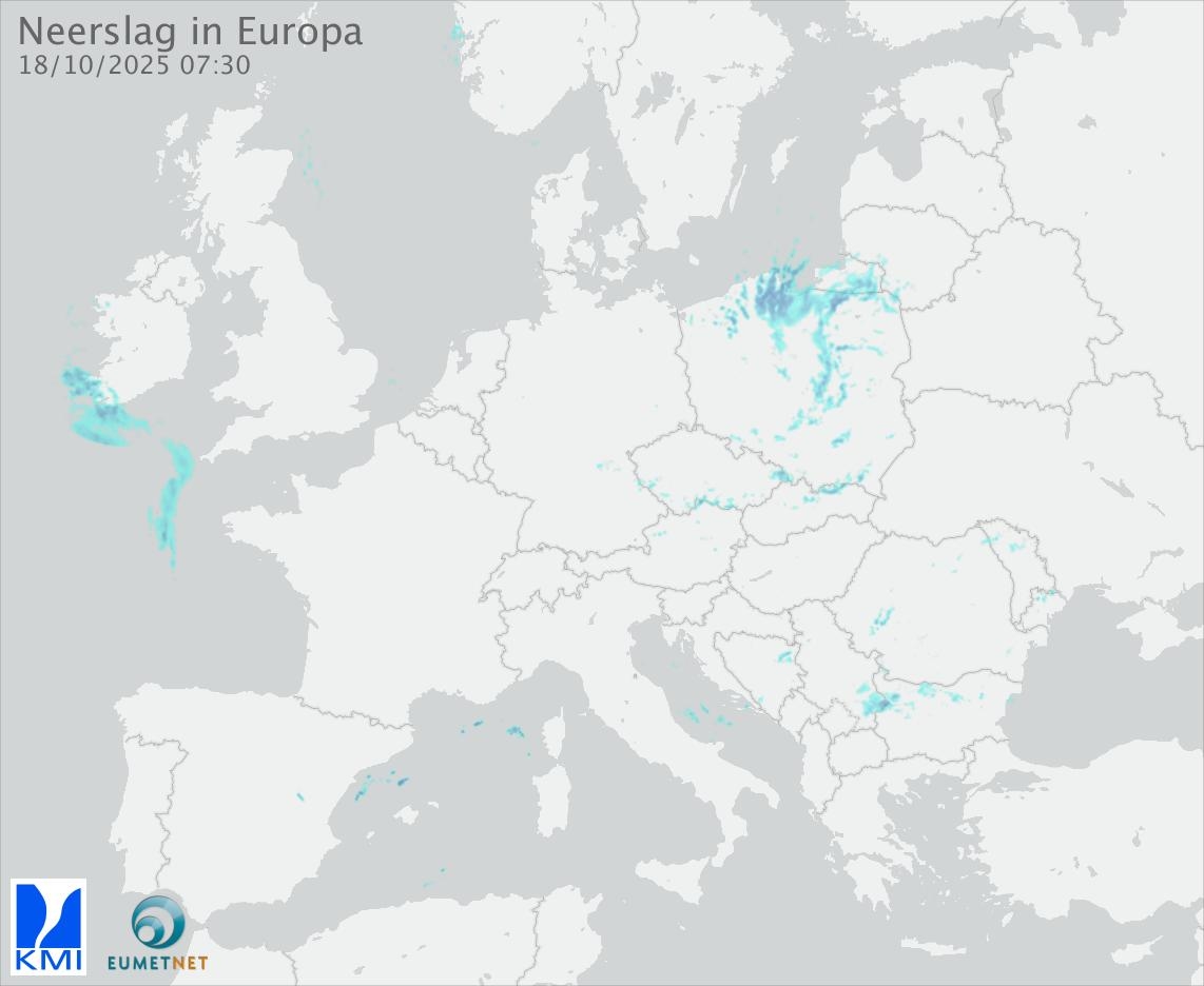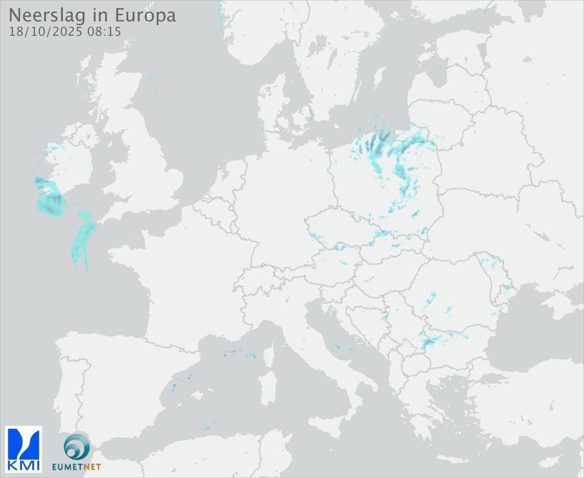 Deze animatie toont de gevallen neerslag waargenomen door de europese radars van de deelnemers aan het OPERA-programma van Eumetnet, per stappen van 15 minuten.