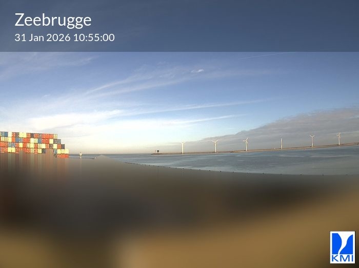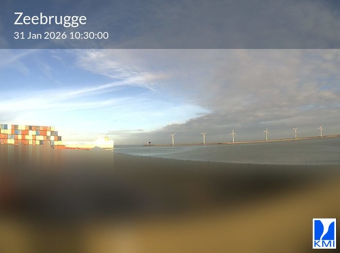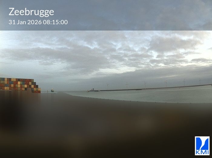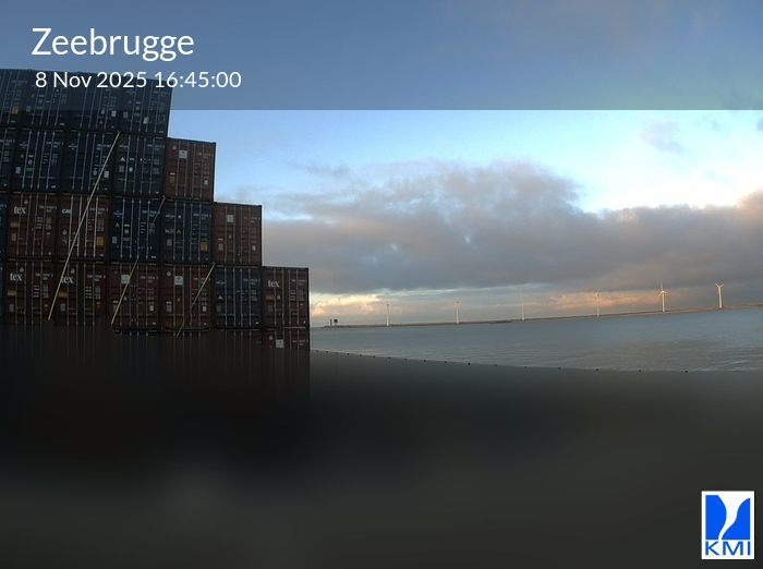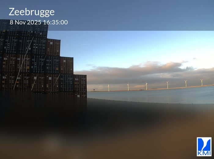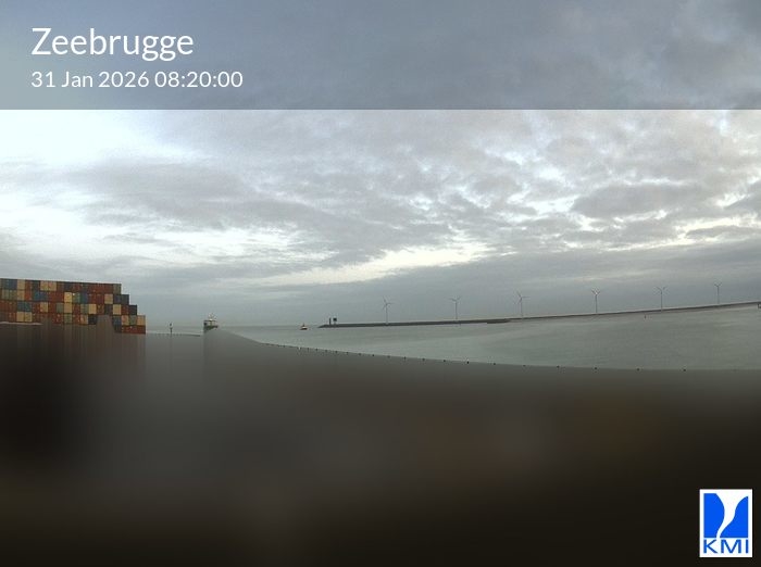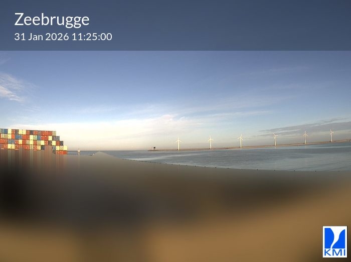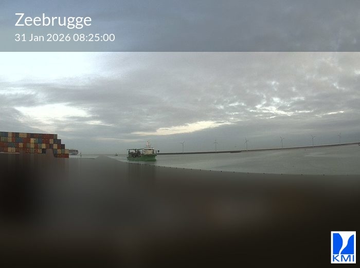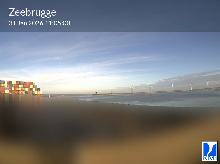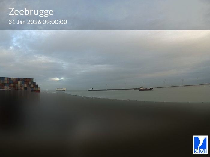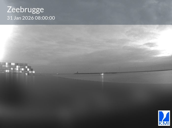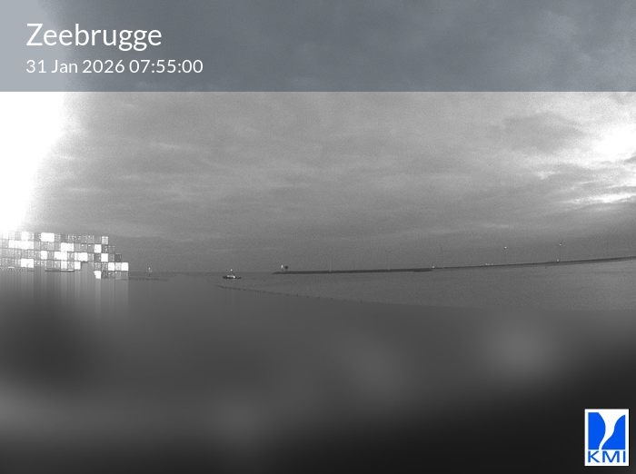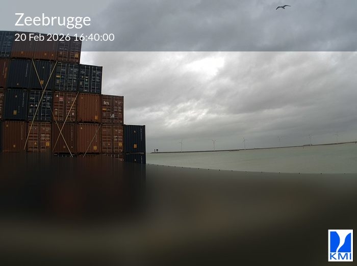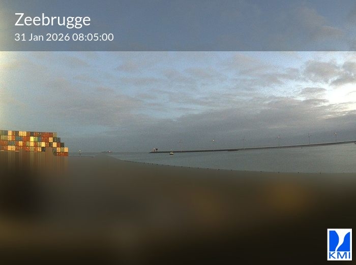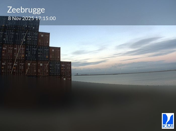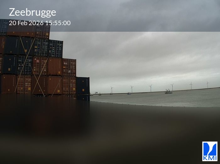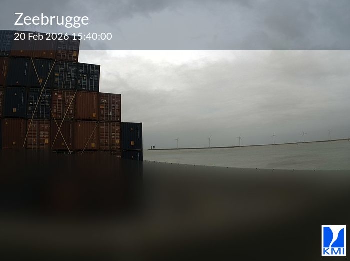 De webcam bevindt zich op de Leopold II-Dam in de haven van Zeebrugge aan de Belgische Kust en is naar het noorden gericht om het rechtstreekse zonlicht tijdens het middaguur te vermijden.