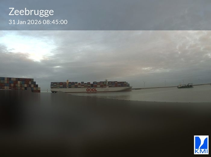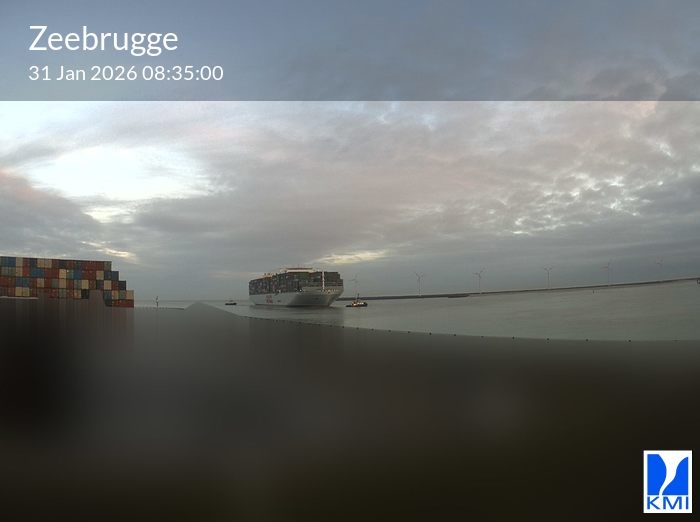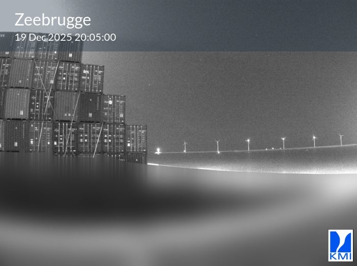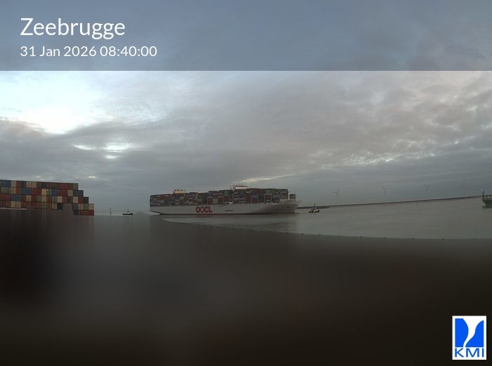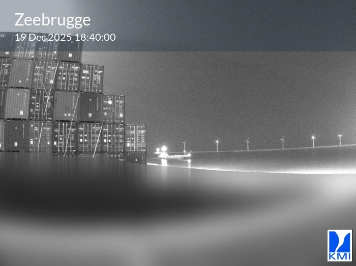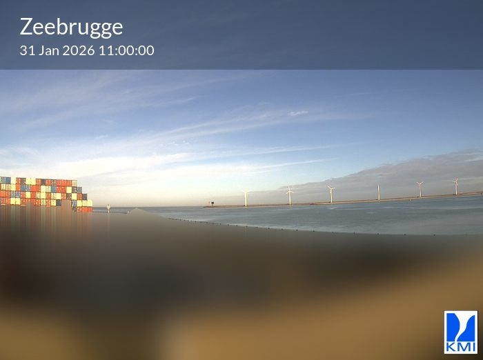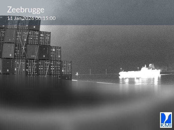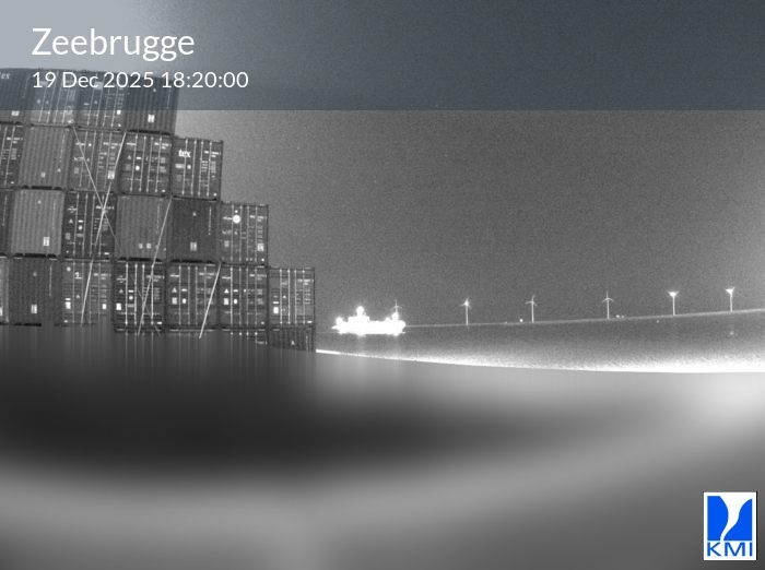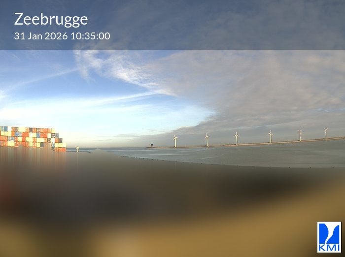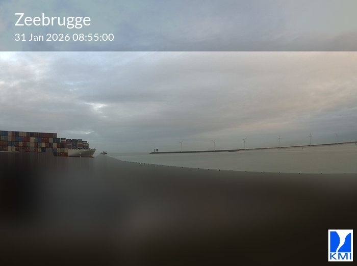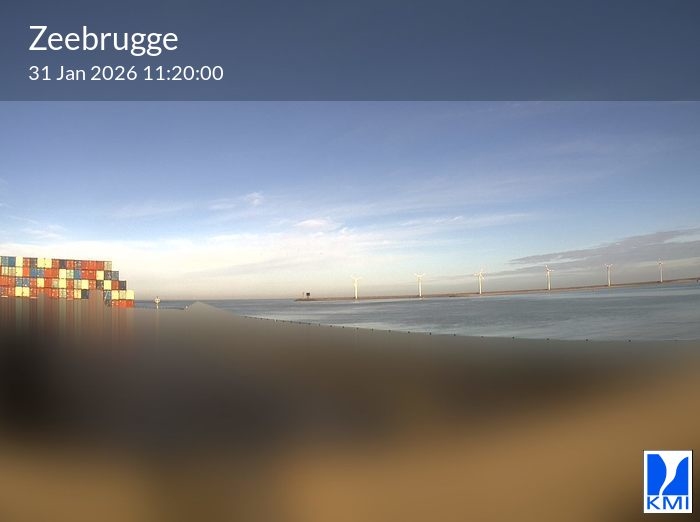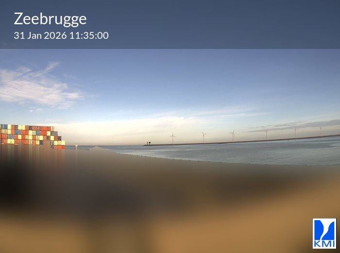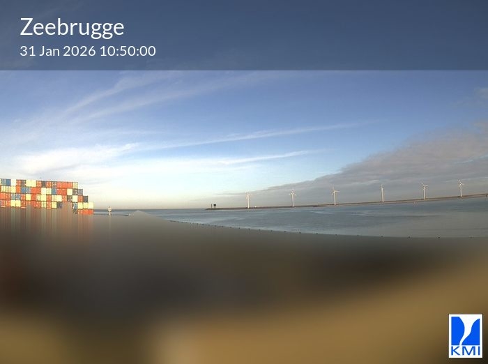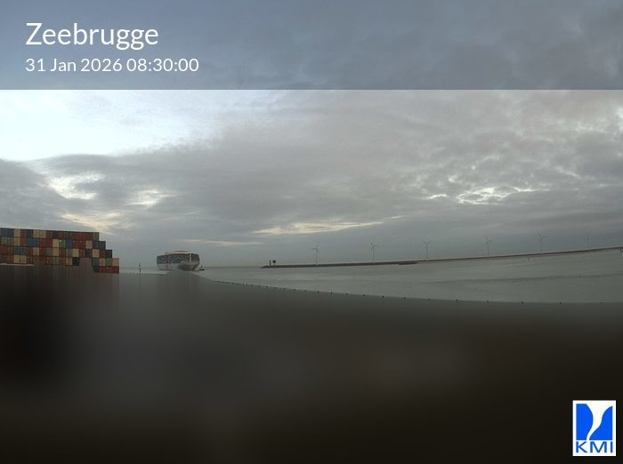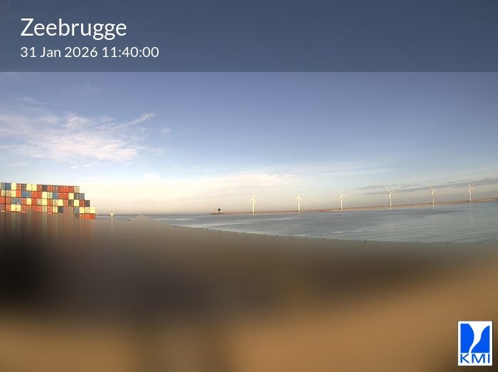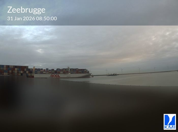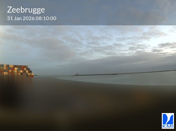 De webcam bevindt zich op de Leopold II-Dam in de haven van Zeebrugge aan de Belgische Kust en is naar het noorden gericht om het rechtstreekse zonlicht tijdens het middaguur te vermijden.