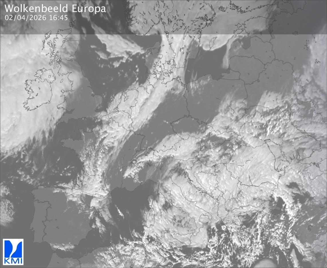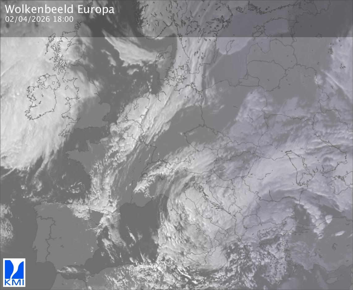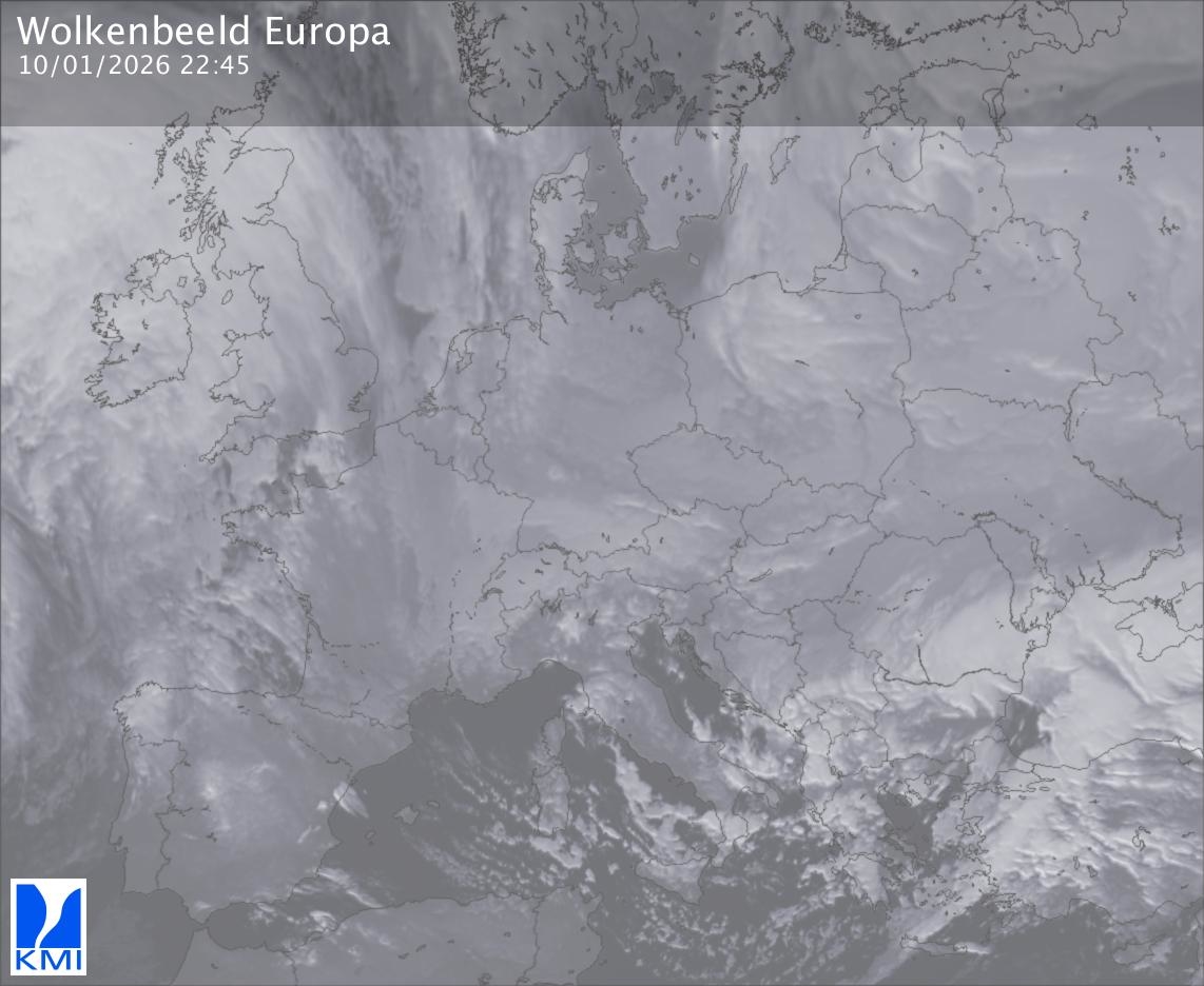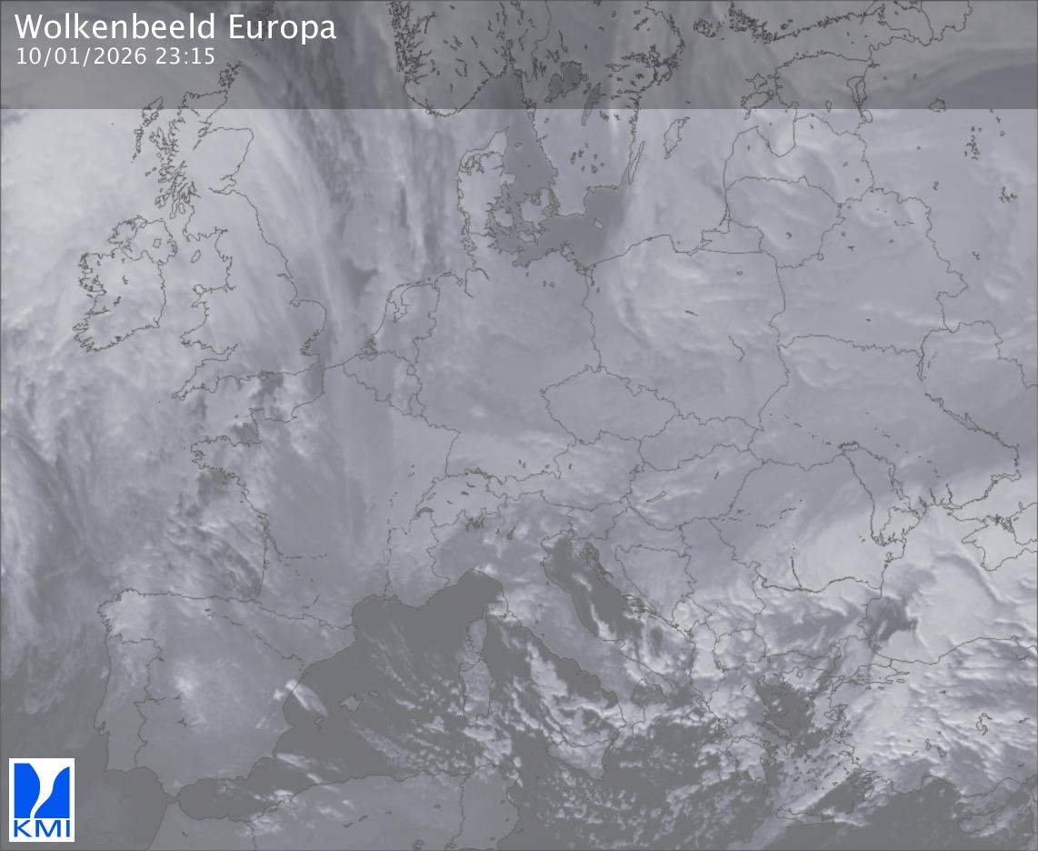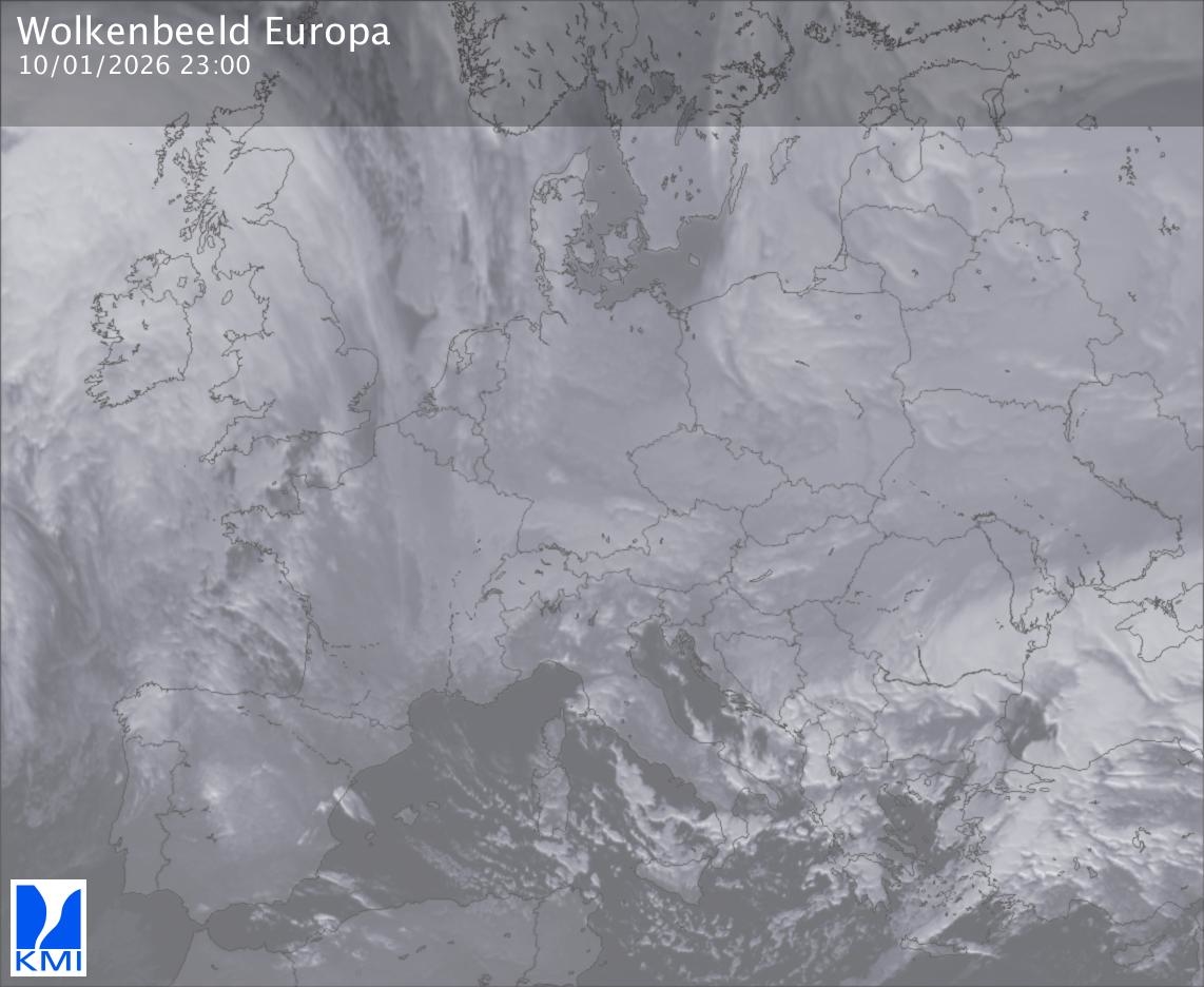 Wolkenbeelden van Europa: een combinatie uit het zichtbare (dag) en infrarode (nacht) spectrum.
