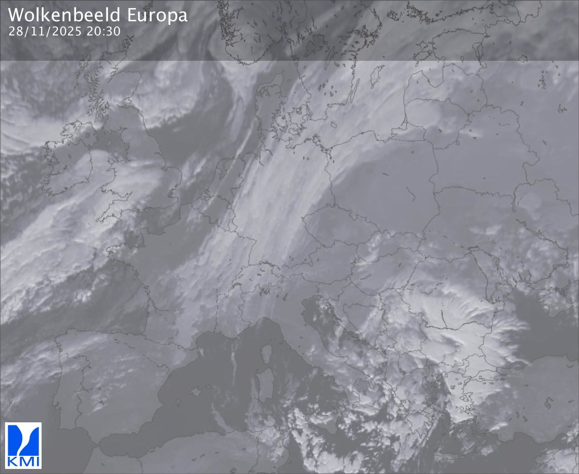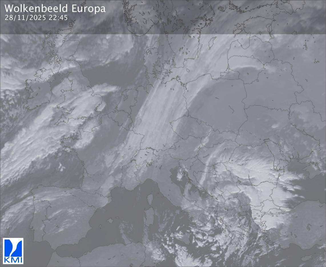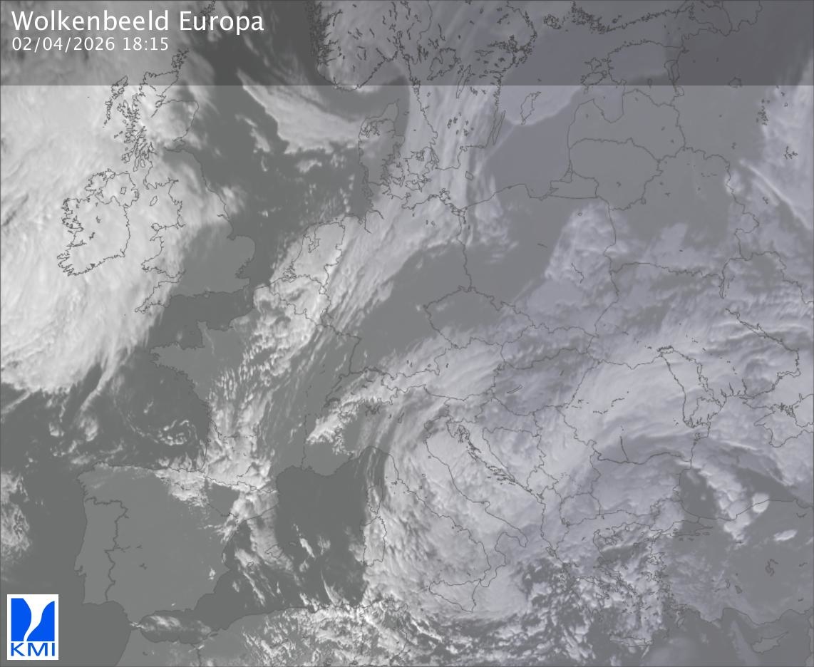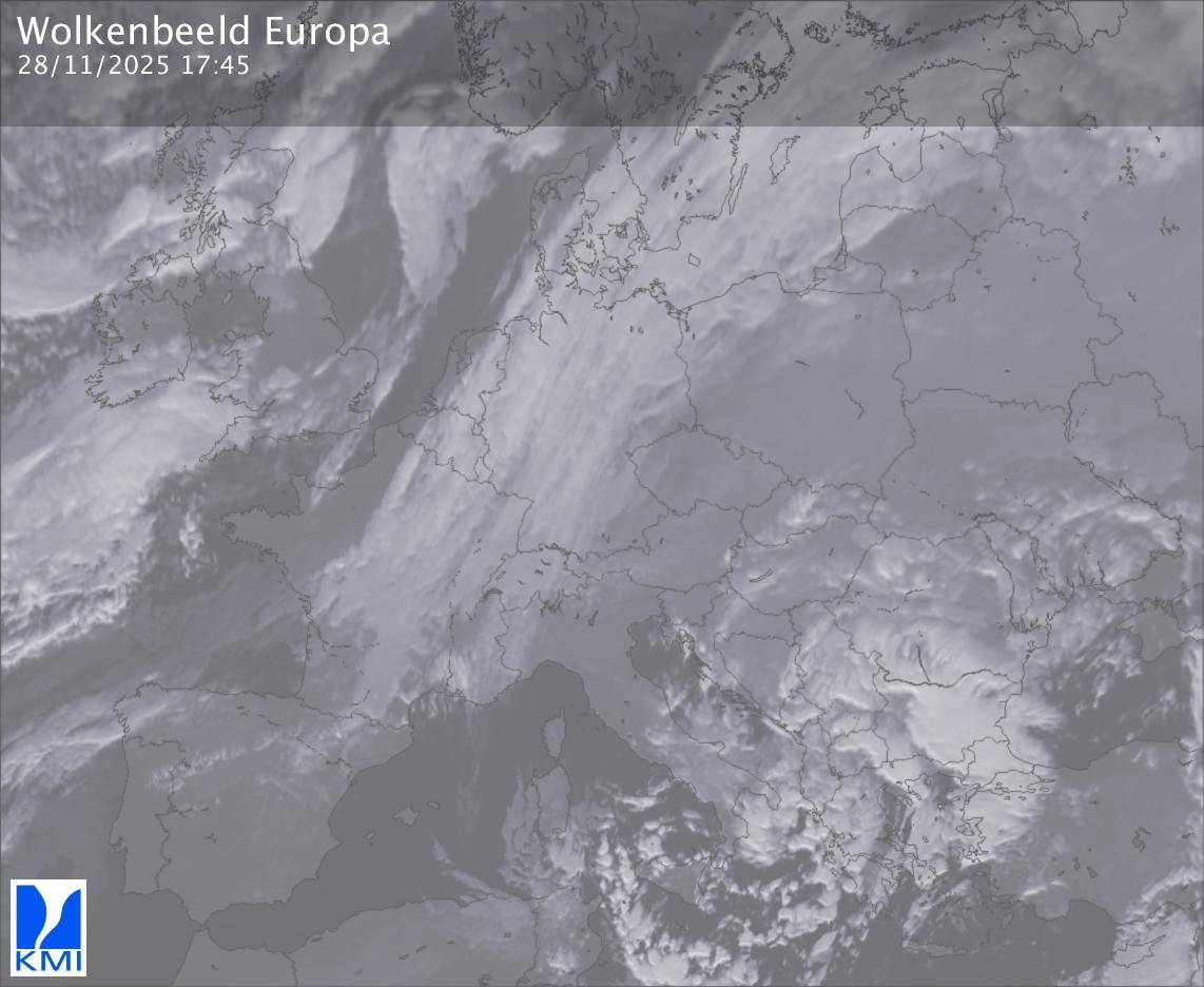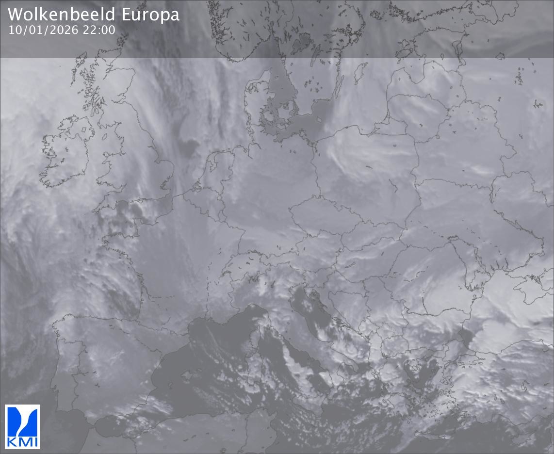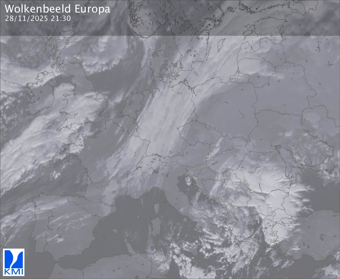 Wolkenbeelden van Europa: een combinatie uit het zichtbare (dag) en infrarode (nacht) spectrum.
