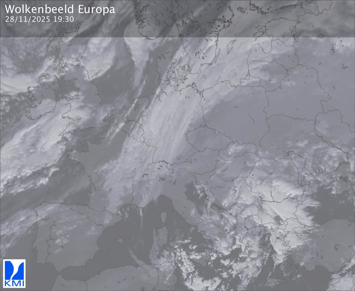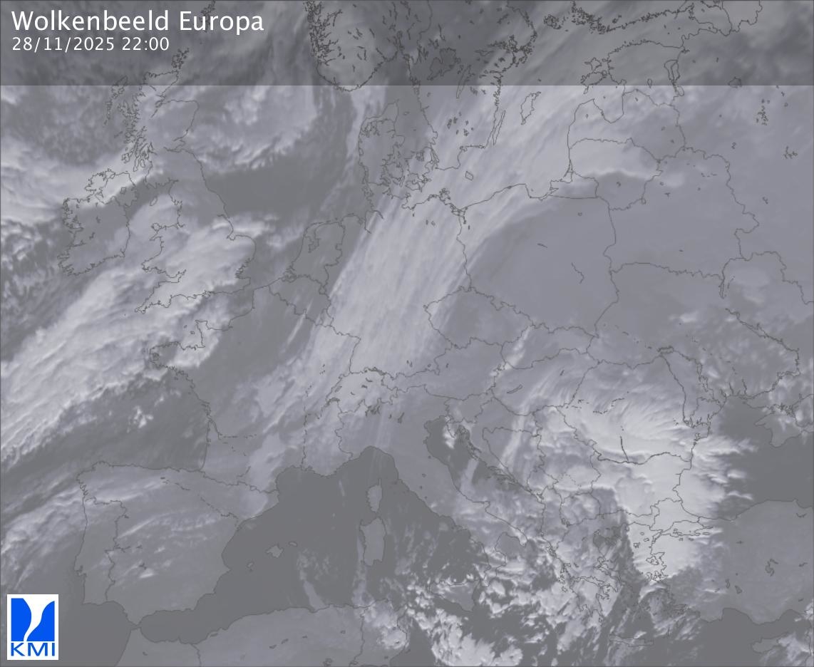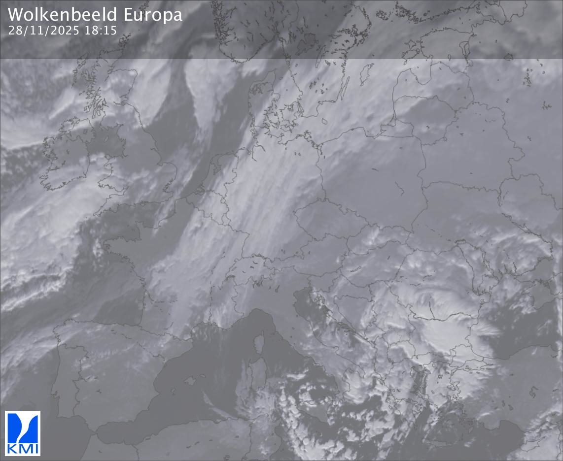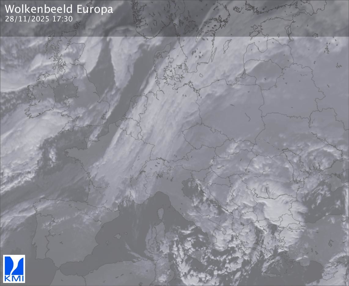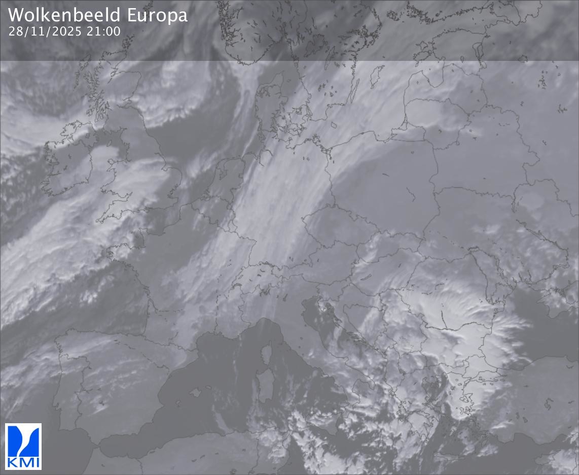 Wolkenbeelden van Europa: een combinatie uit het zichtbare (dag) en infrarode (nacht) spectrum.