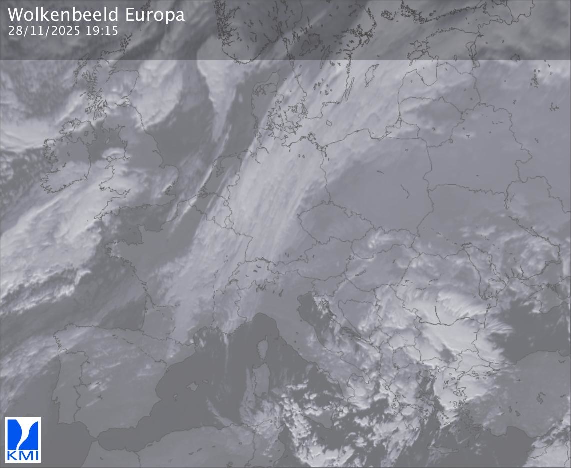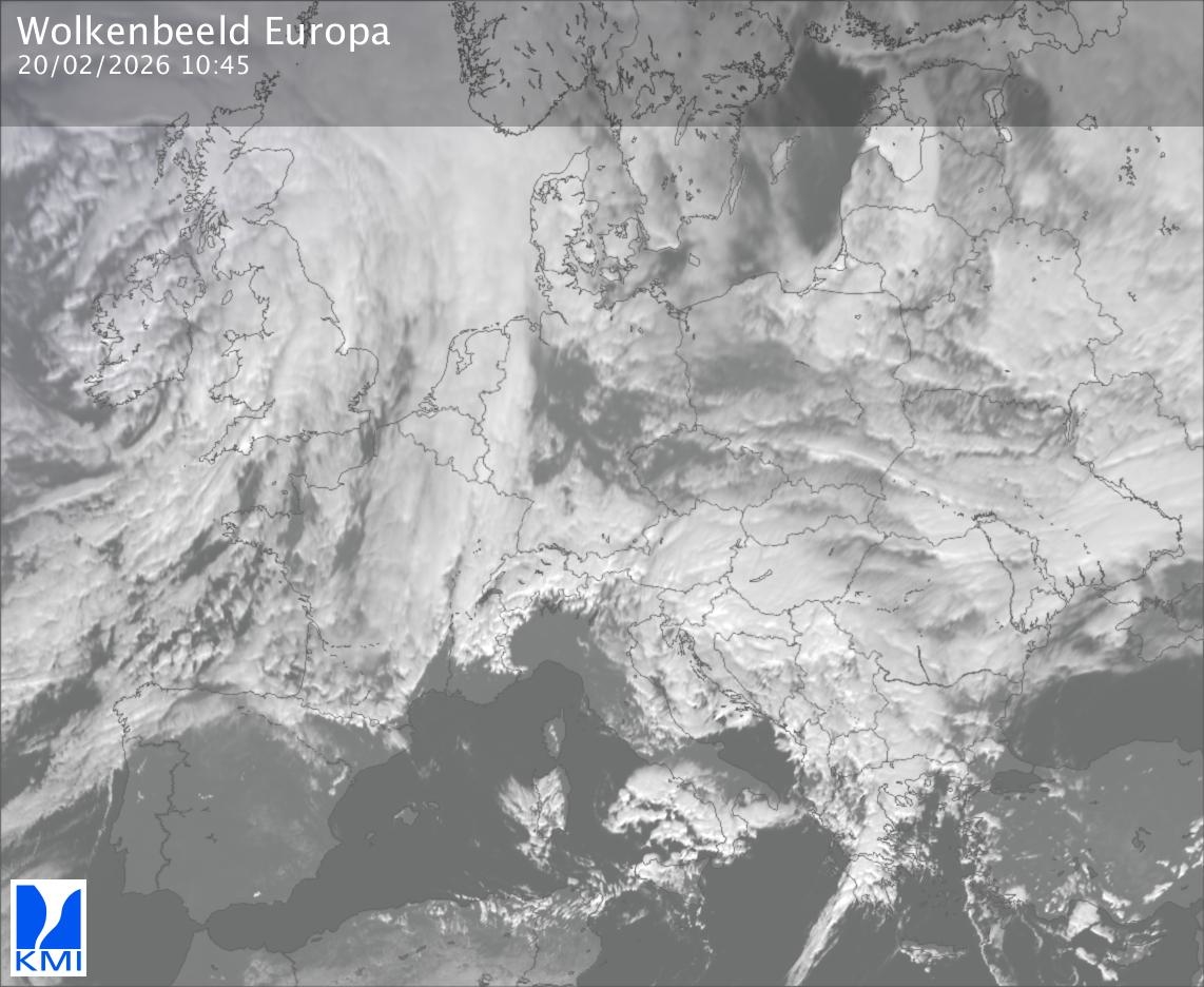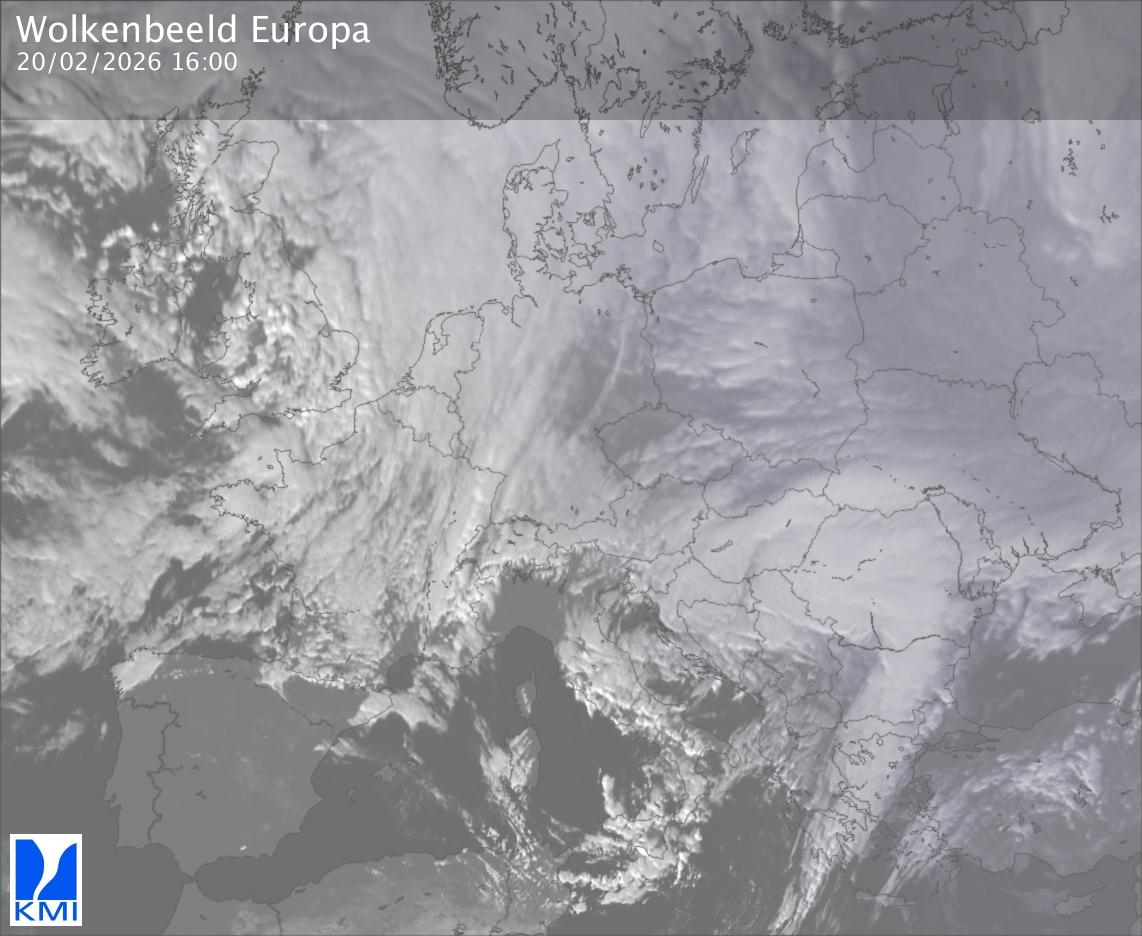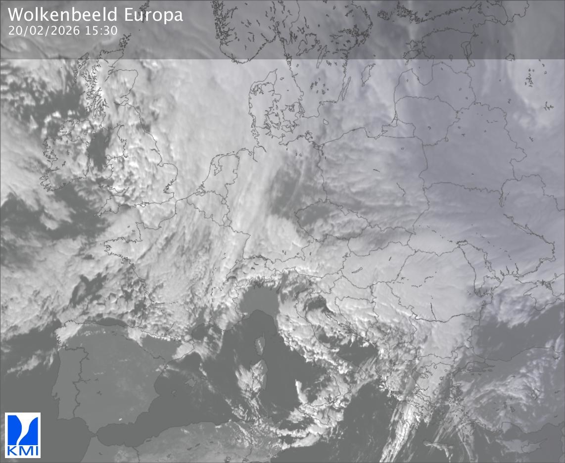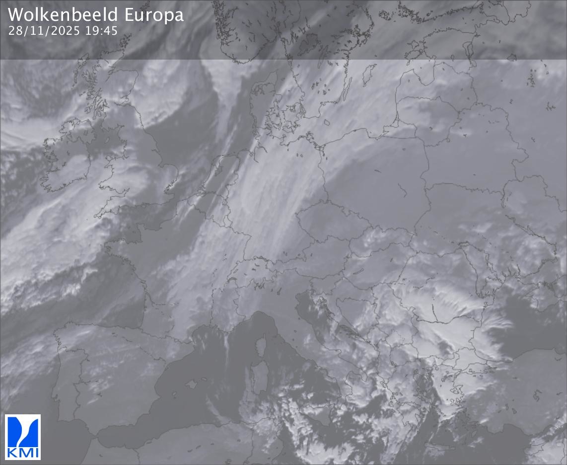 Wolkenbeelden van Europa: een combinatie uit het zichtbare (dag) en infrarode (nacht) spectrum.