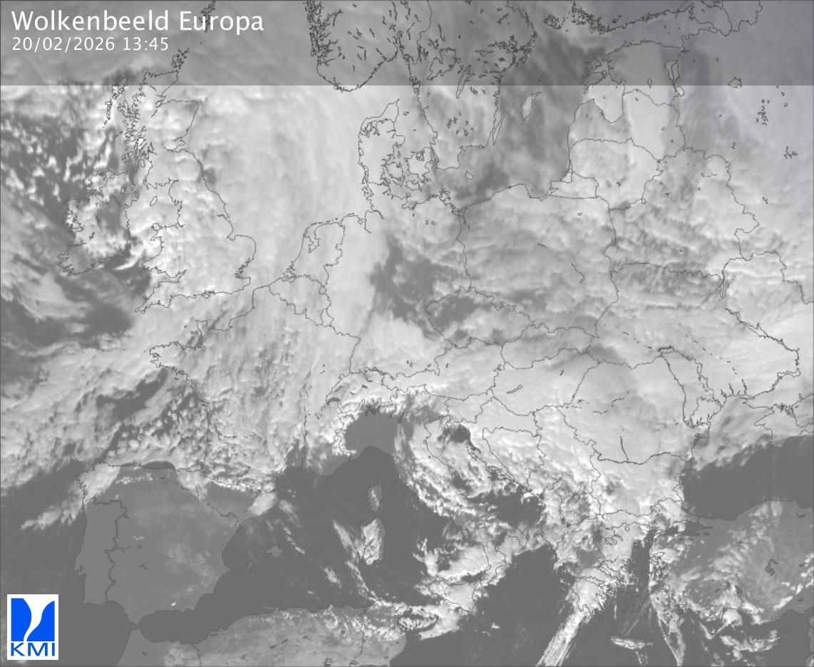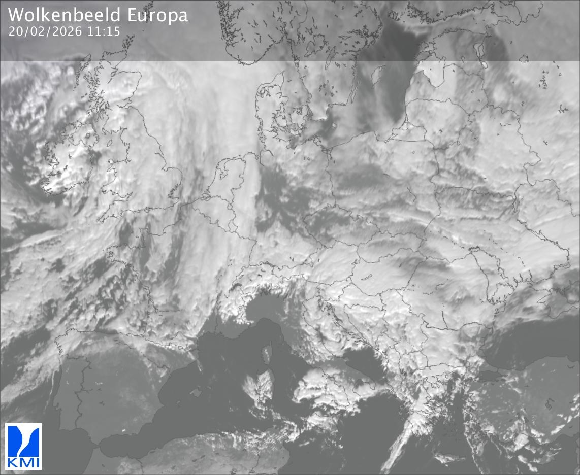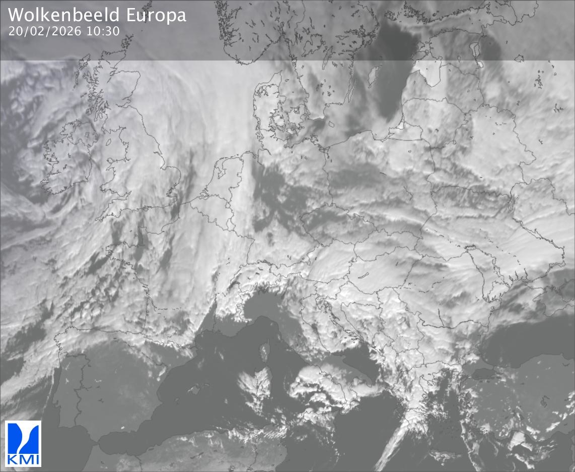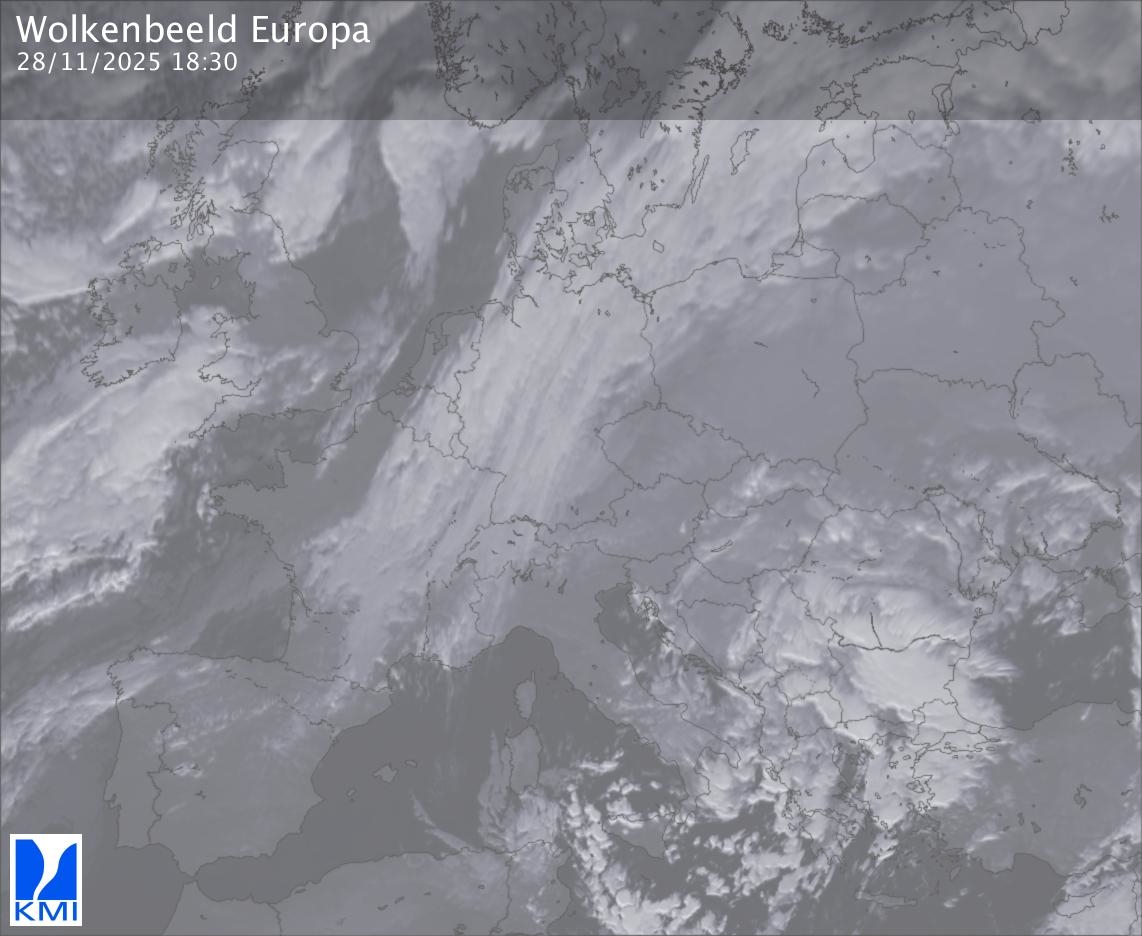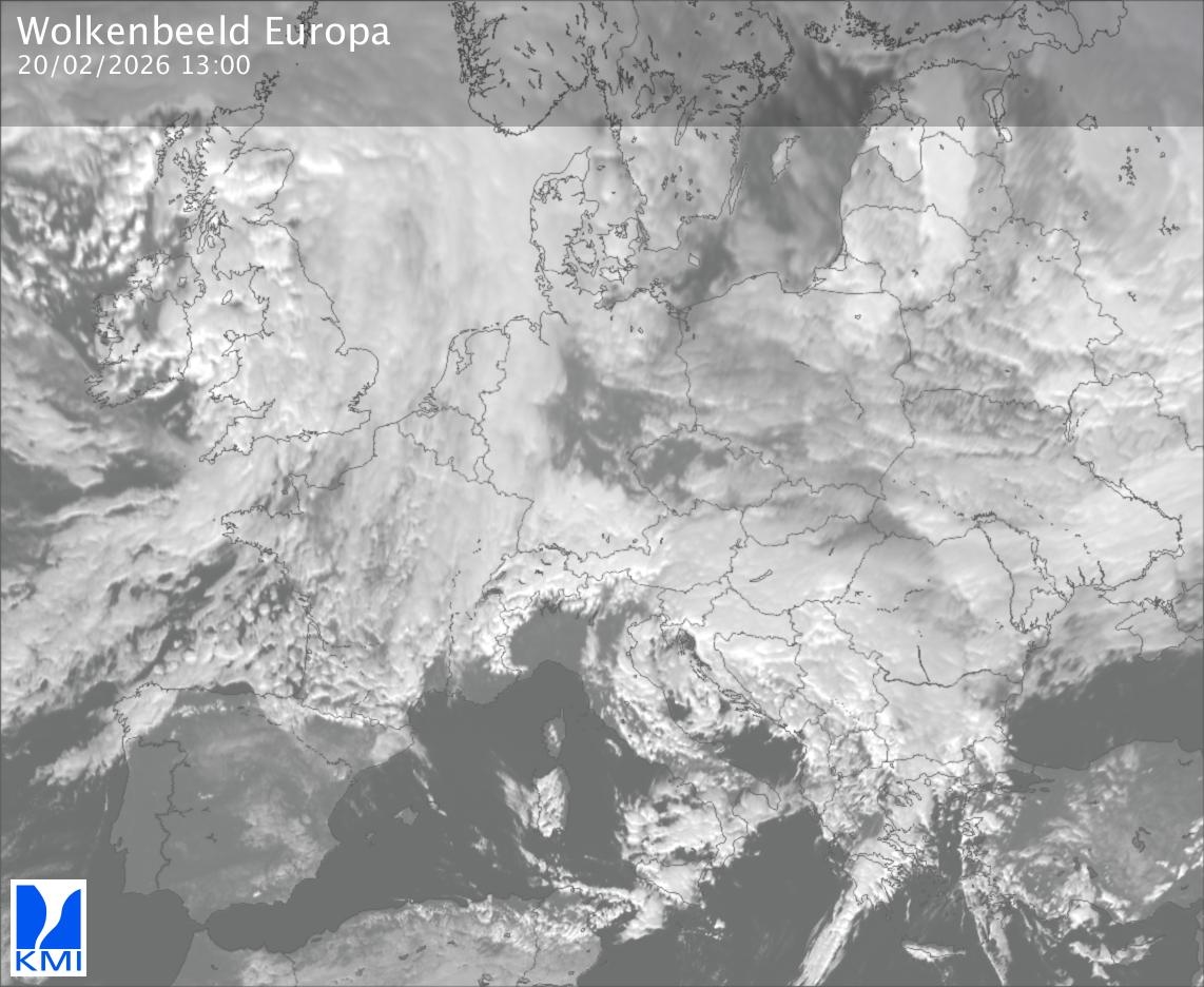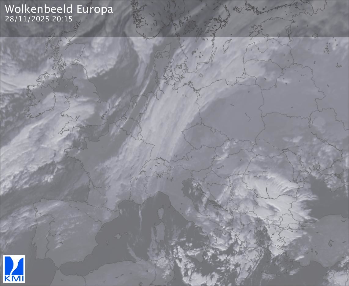 Wolkenbeelden van Europa: een combinatie uit het zichtbare (dag) en infrarode (nacht) spectrum.
