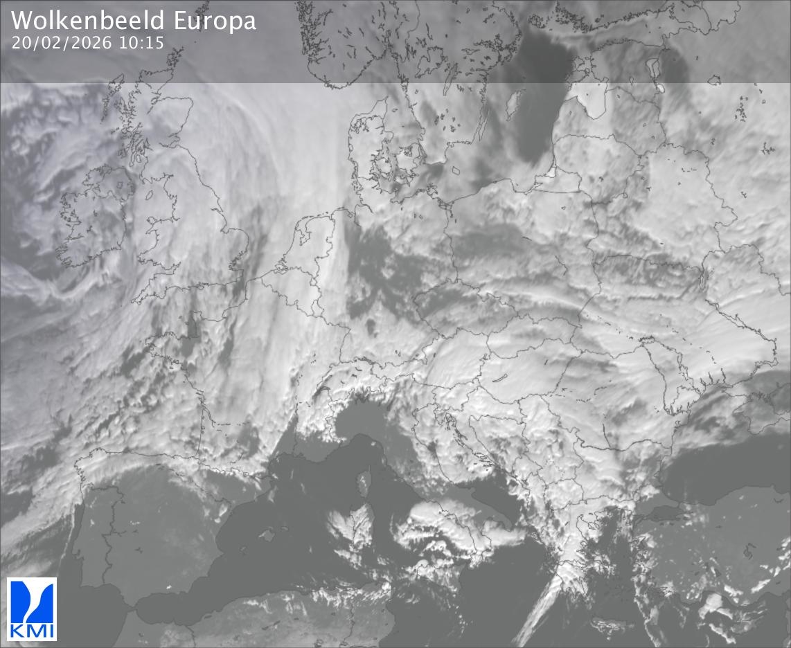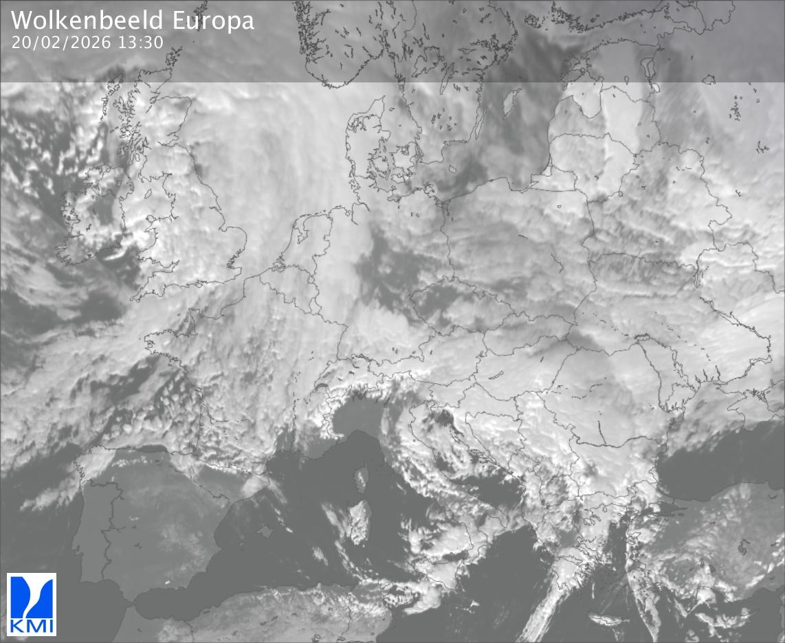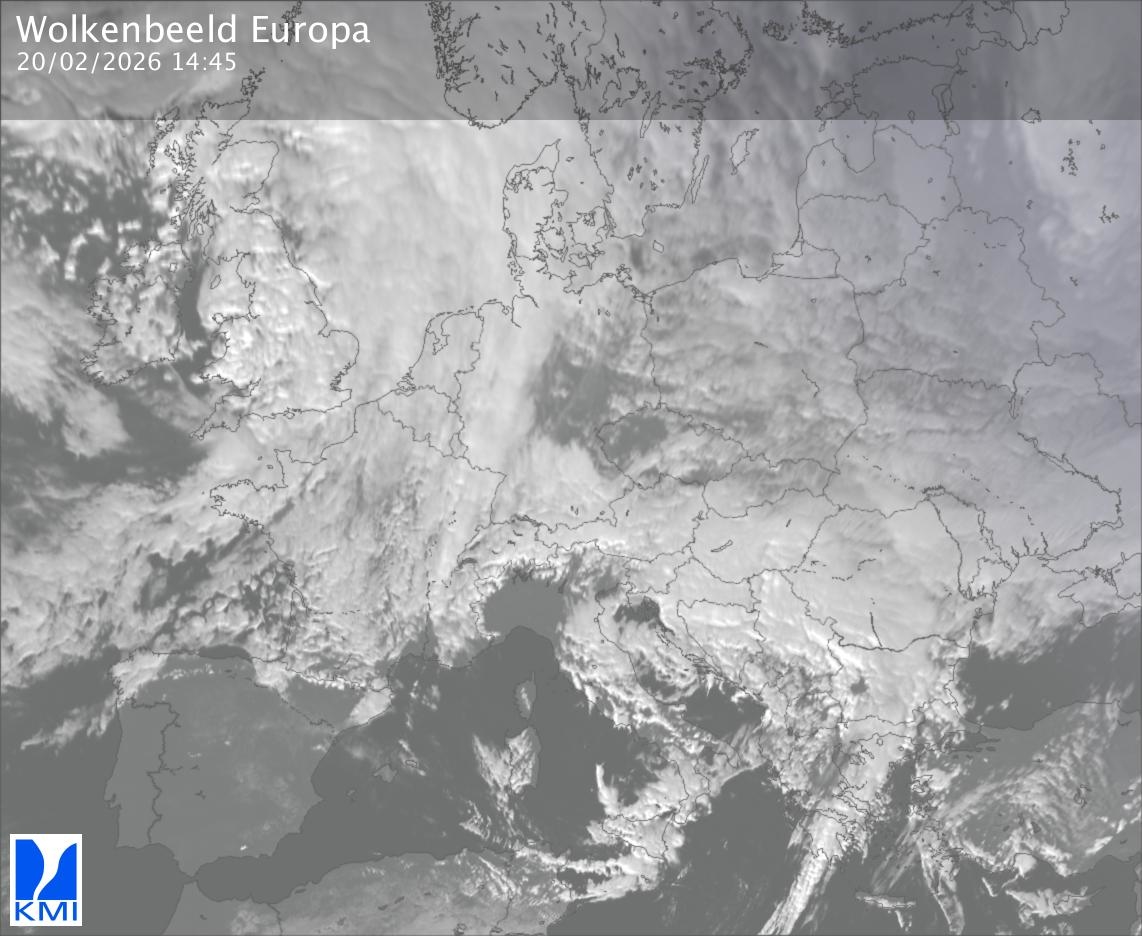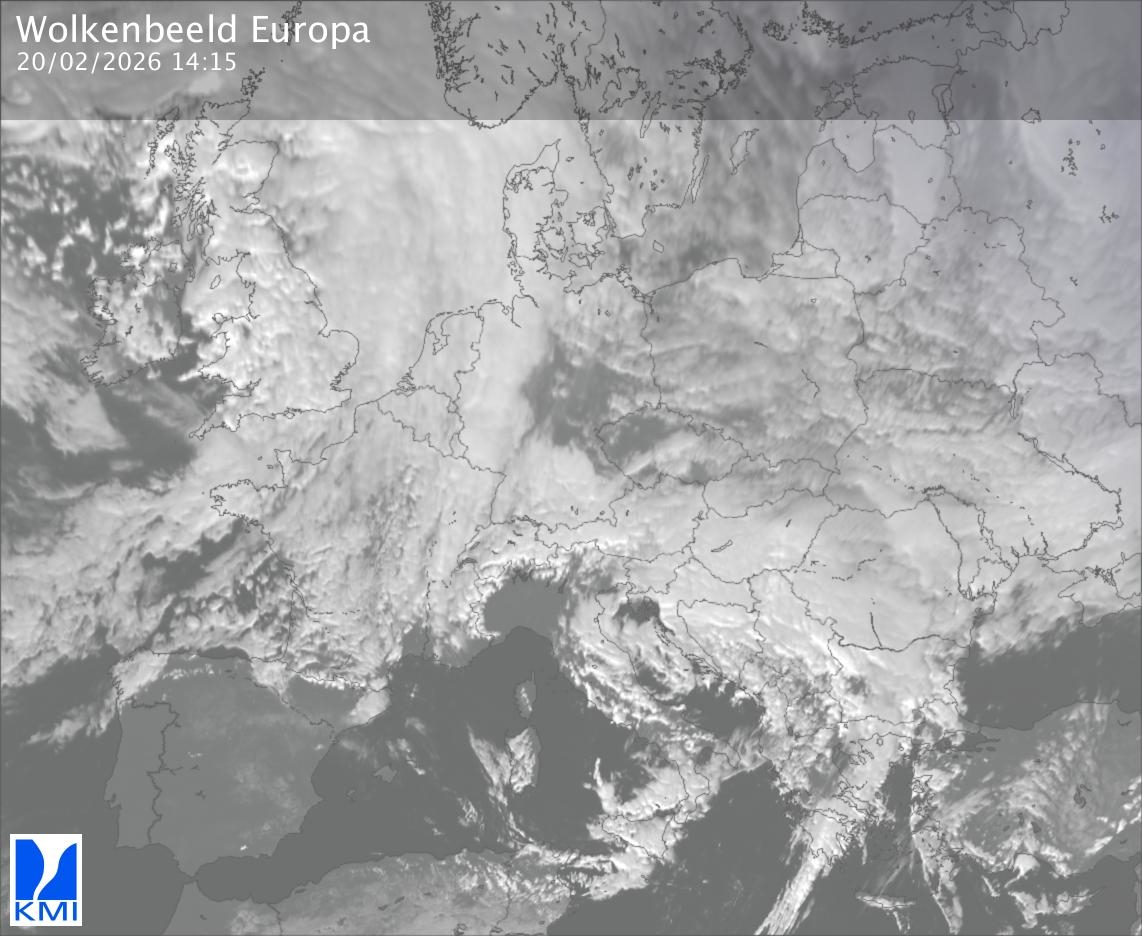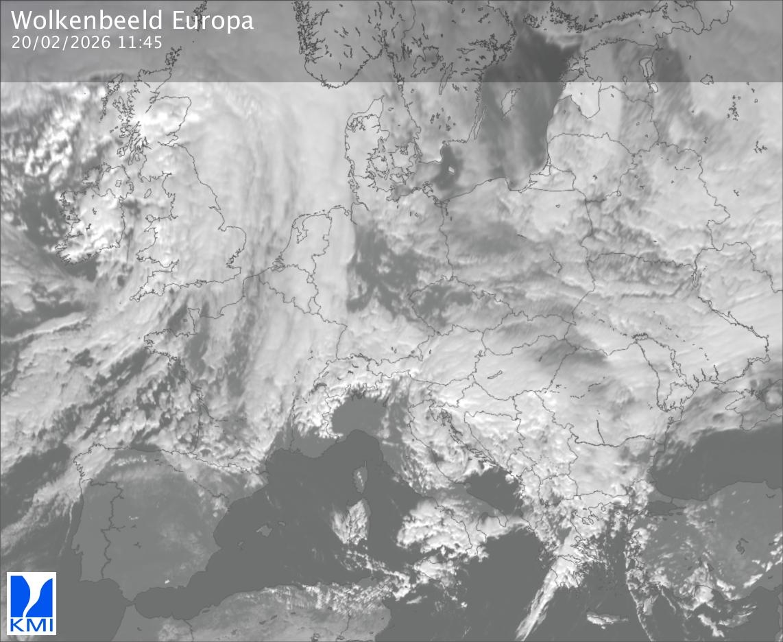 Wolkenbeelden van Europa: een combinatie uit het zichtbare (dag) en infrarode (nacht) spectrum.