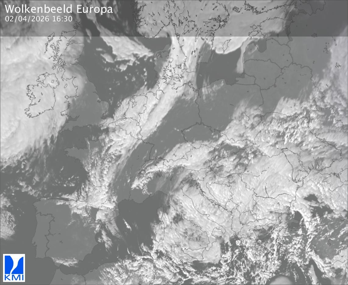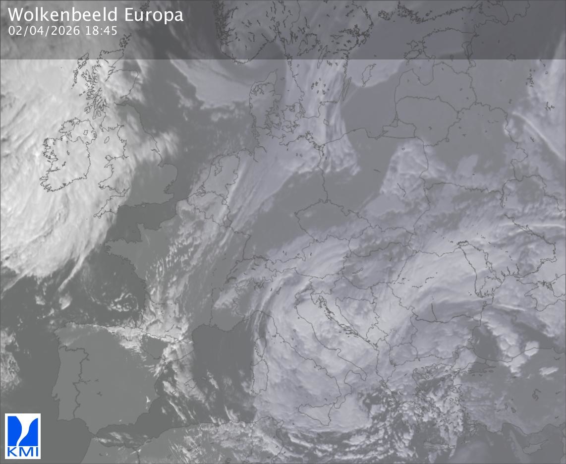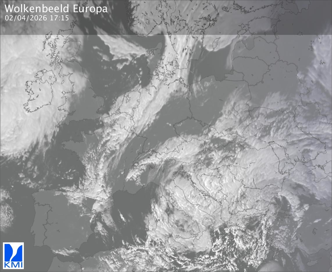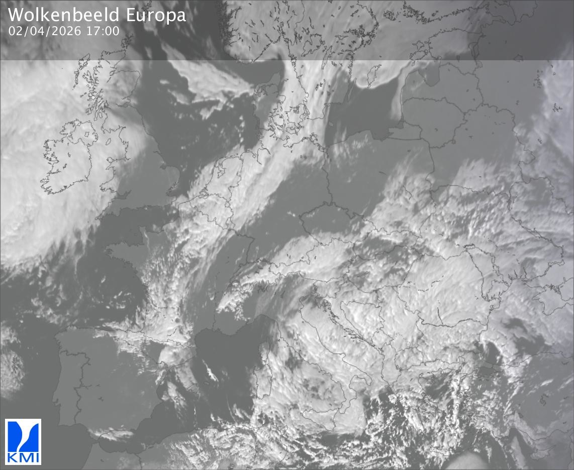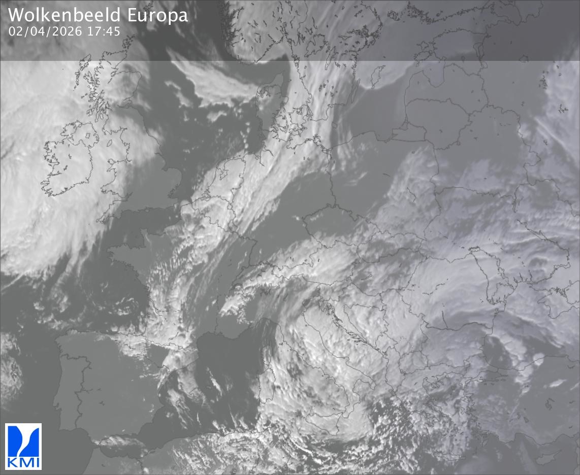 Hier ziet men wolkenbeelden die samengesteld worden door de satellietwaarnemingen uit het infrarode en het zichtbare golflengtebereik.