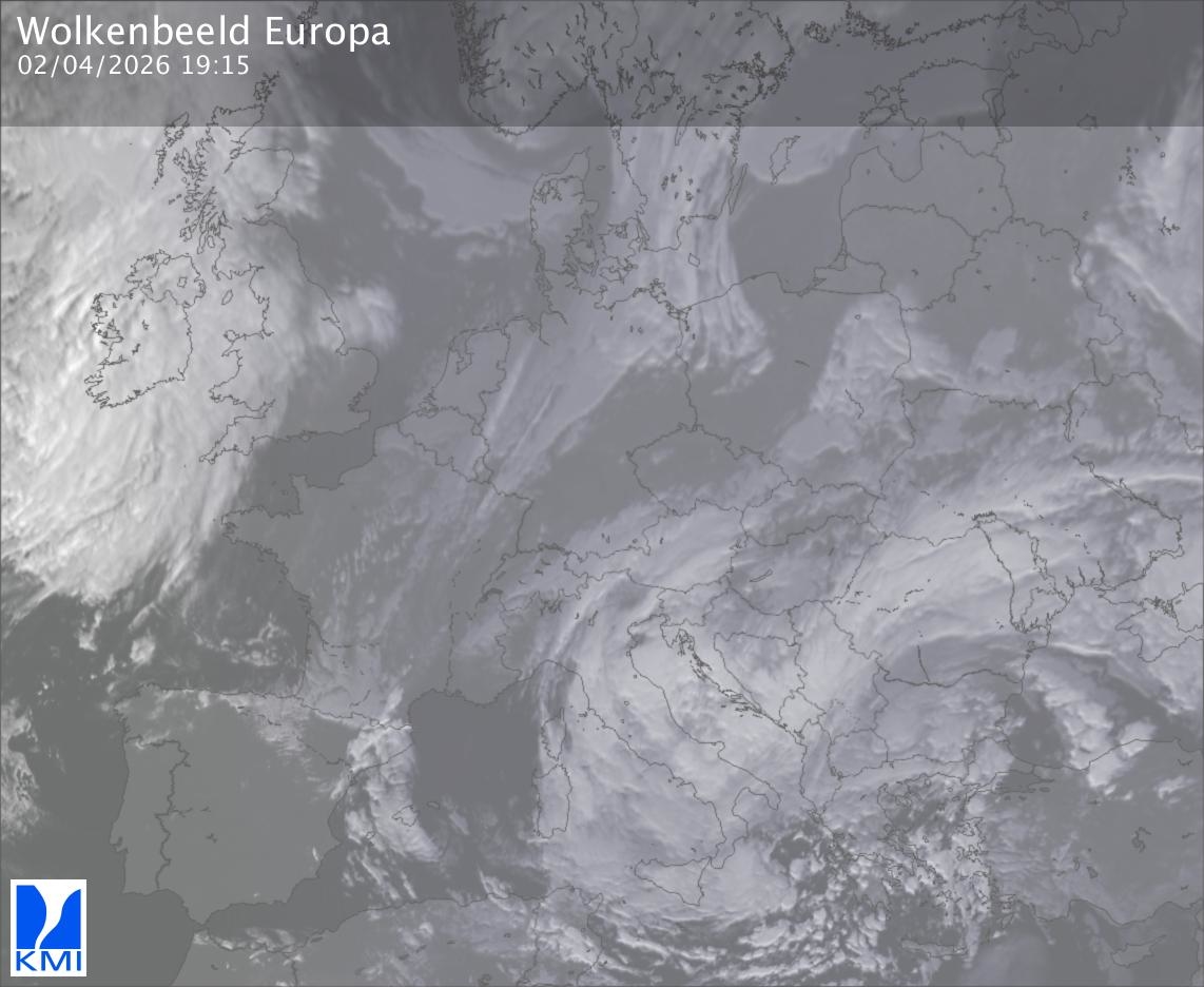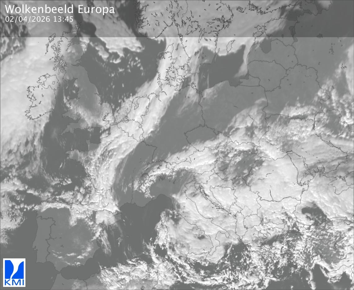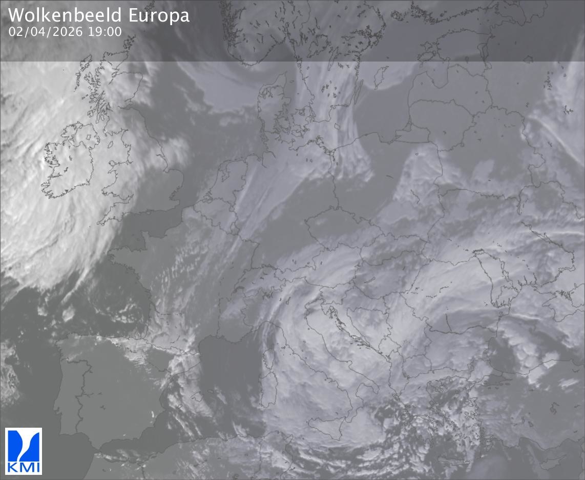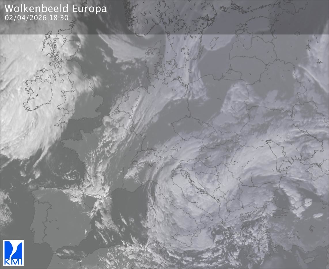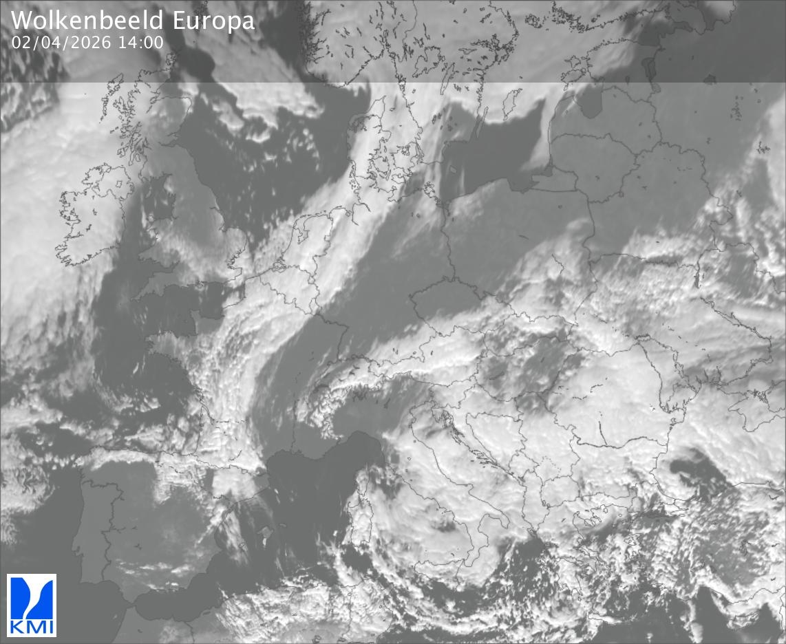 Hier ziet men wolkenbeelden die samengesteld worden door de satellietwaarnemingen uit het infrarode en het zichtbare golflengtebereik.